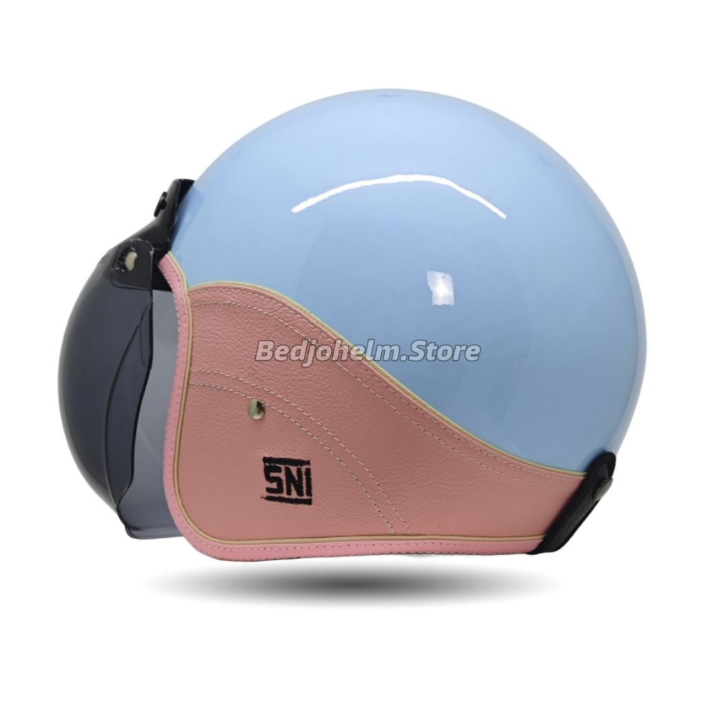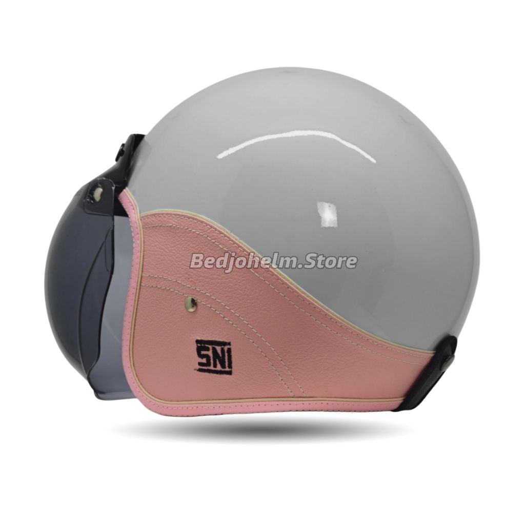 Helm Bogo Semi Kulit Pink Retro Full Leher SNI Busa Coklat