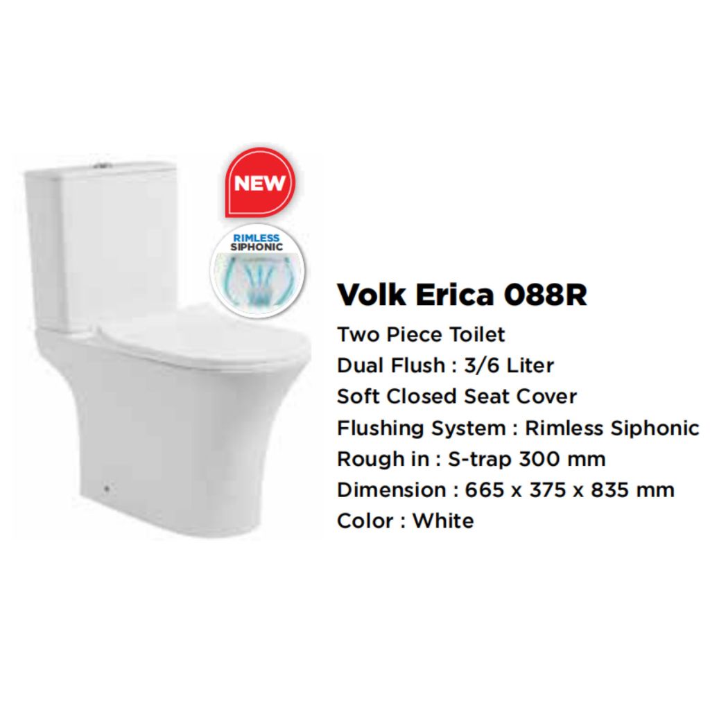 Volk - Closet Kloset Toilet Duduk Erica 088R Two Piece Dual Flush Soft Close Rimless Siphonic Toto