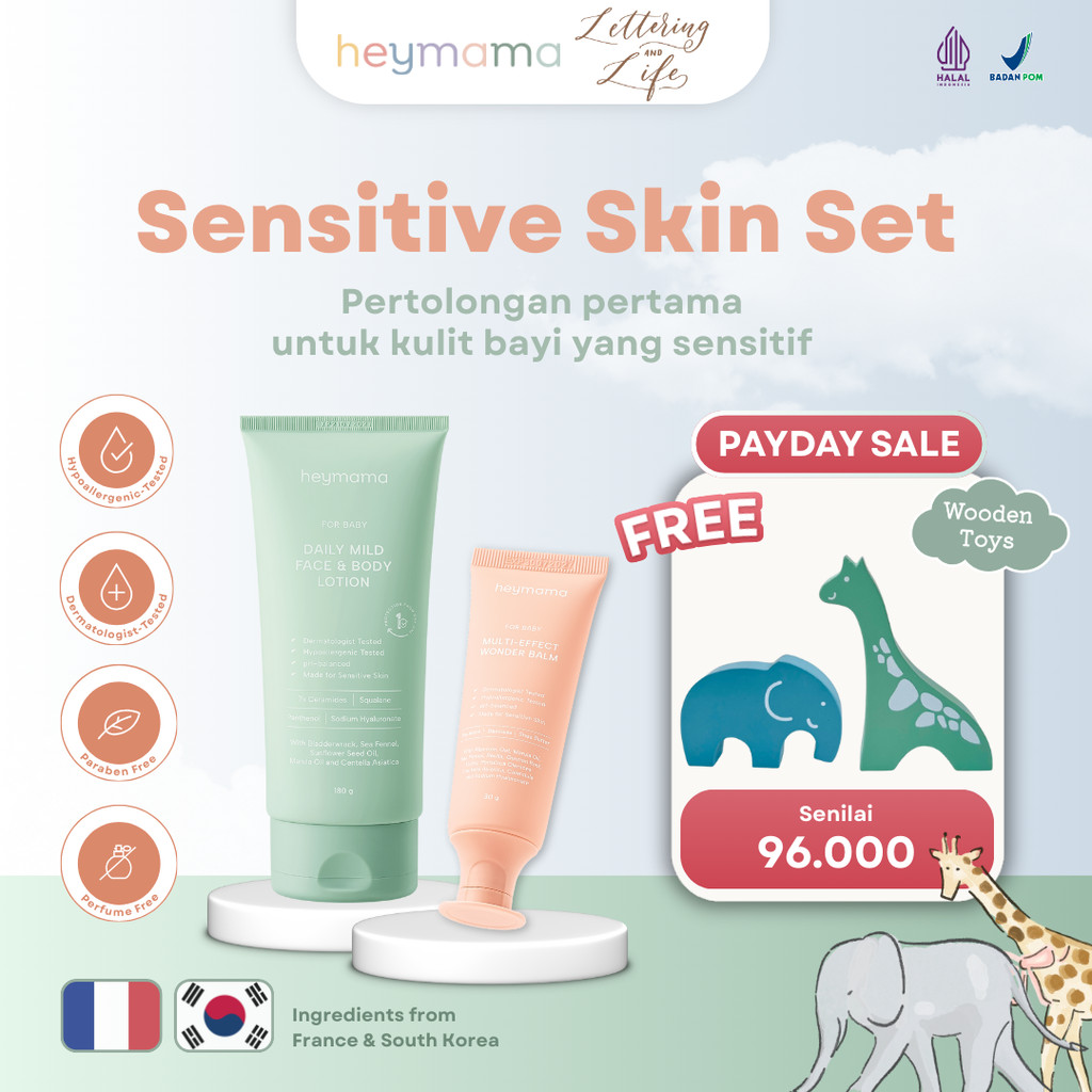 Heymama Sensitive Skin Set - Paket Lotion Salep Skincare Wajah & Tubuh Bayi Perawatan Kulit Sensitif Free WOODEN TOYS AN
