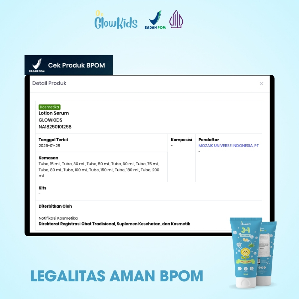 Glowkids Cream Bayi Untuk Wajah Dan Badan Glowing 100 ML Niacinamide Serum Baby And Kids Bpom
