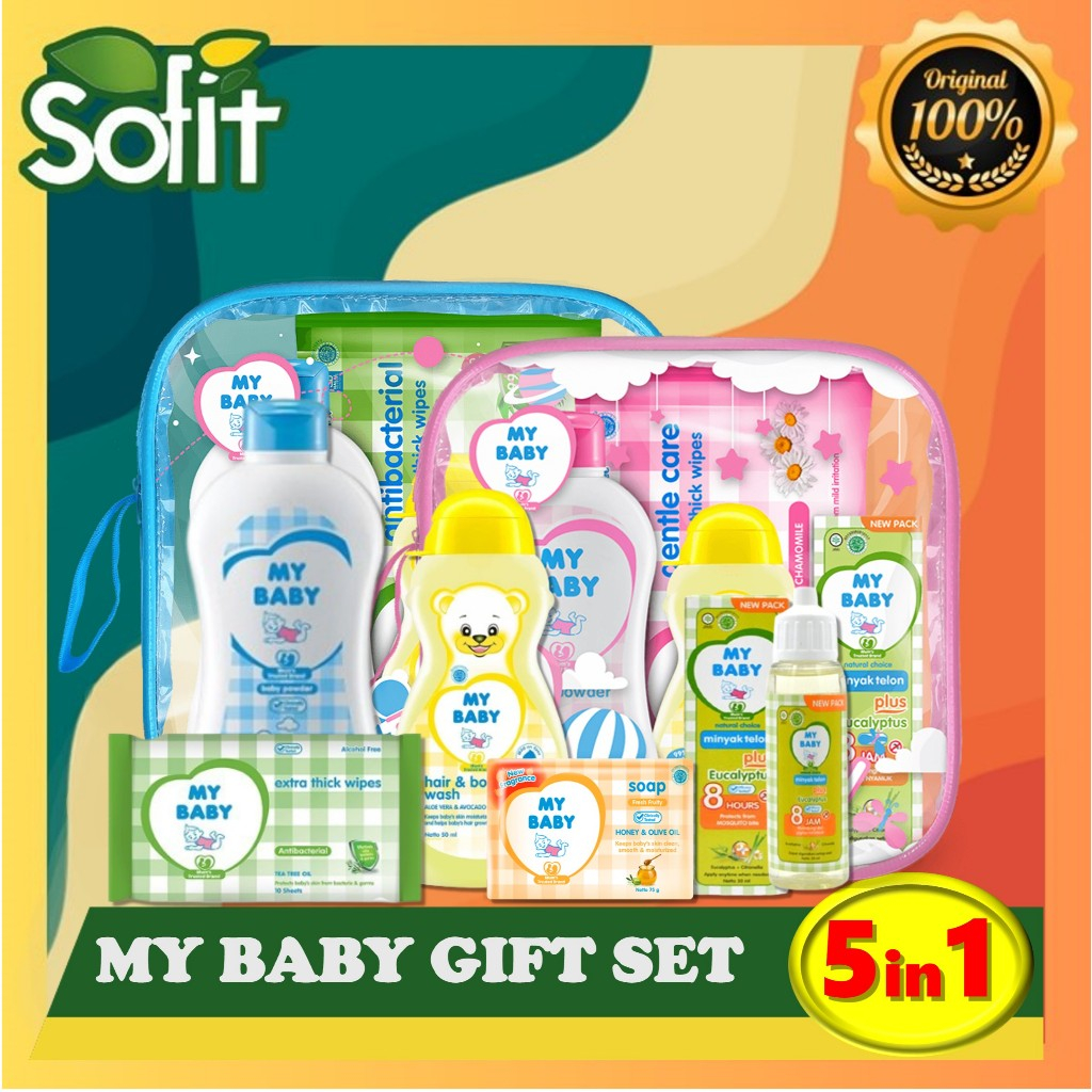 MY BABY Gift Set 5 in1 - Gift Pack - Cream - Wash - Powder - Hair Lotion - Telon - Baby Oil - SoFit