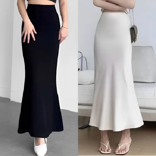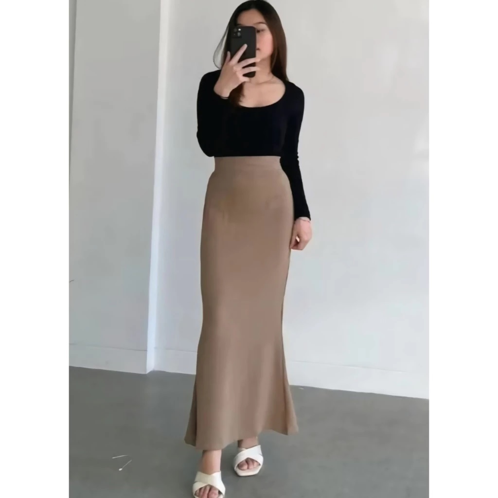 YUWAY - Lunar Mermaid Skirt - Rok Satin Silk Premium - Rok Mermaid Basic Polos Bahan Scuba