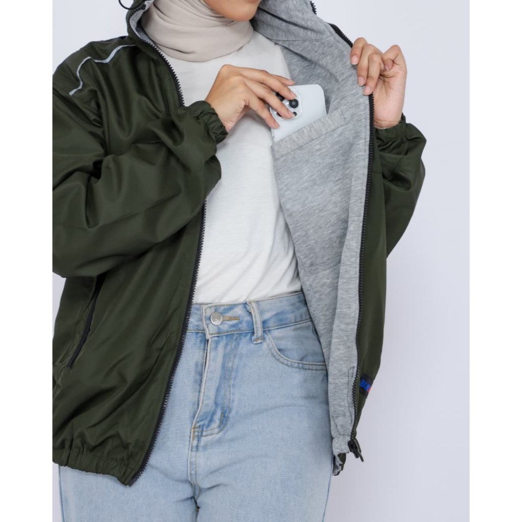 JAKET MOTOR COWOK CEWEK HOODIE PARASUT ARMY 2IN 1 BOLAK BALIK