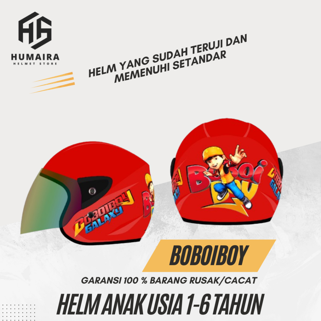 Helm Anak Karakter BoboiBoy Helm Anak Motor SNI Usia 2 3 4 5 6 Tahun Premepuan Laki Laki