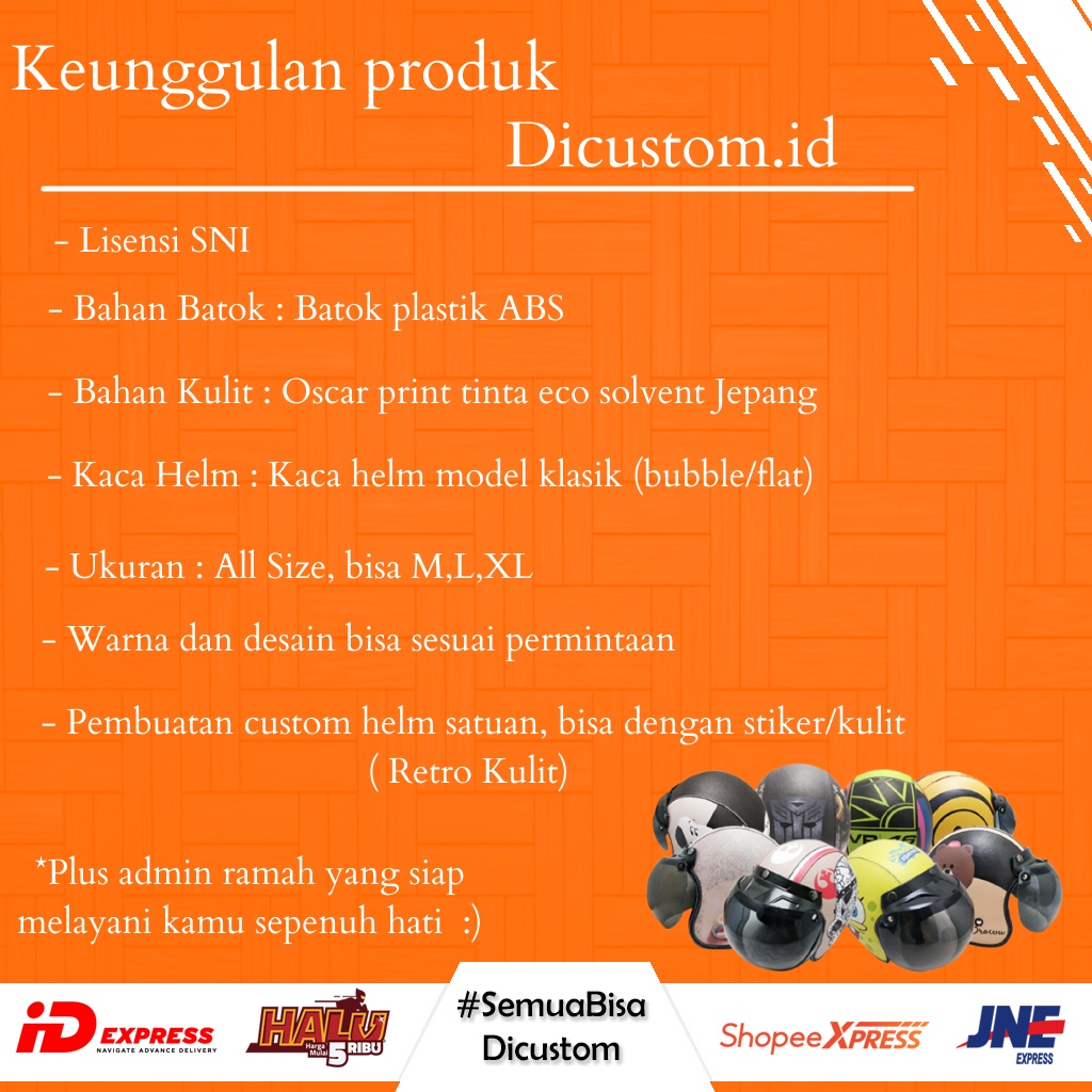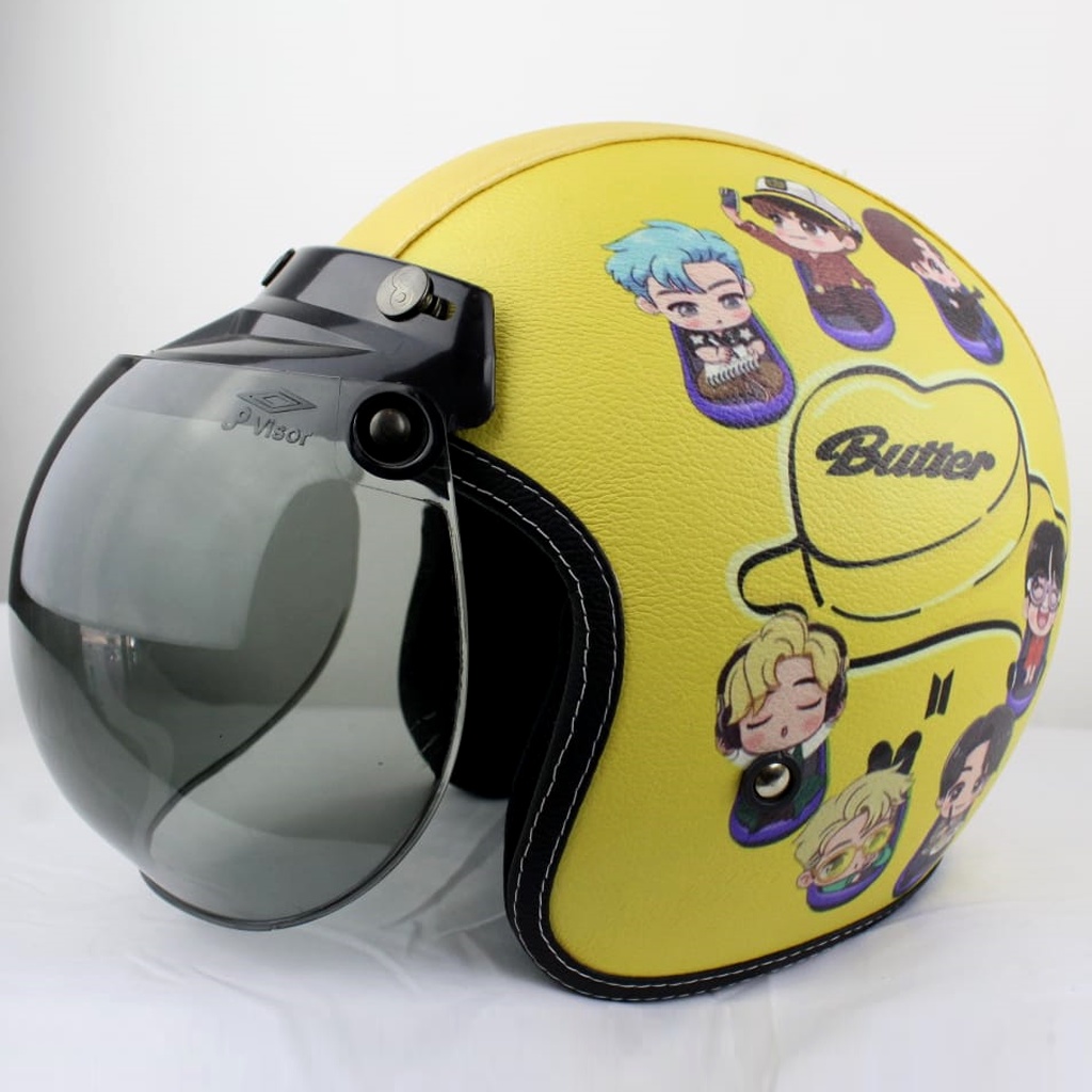 Helm Bogo Retro Kulit Dewasa Special Edition Butter BTS Free Tambah Nama