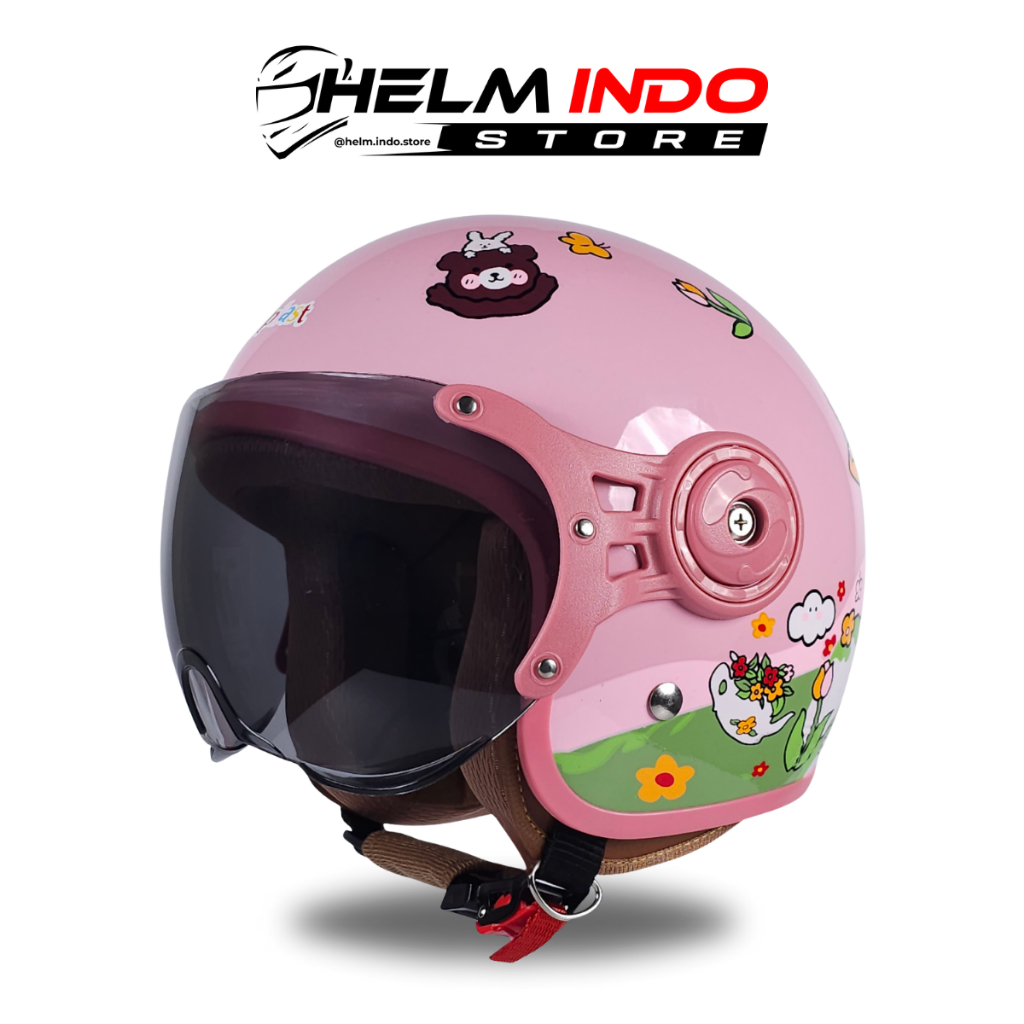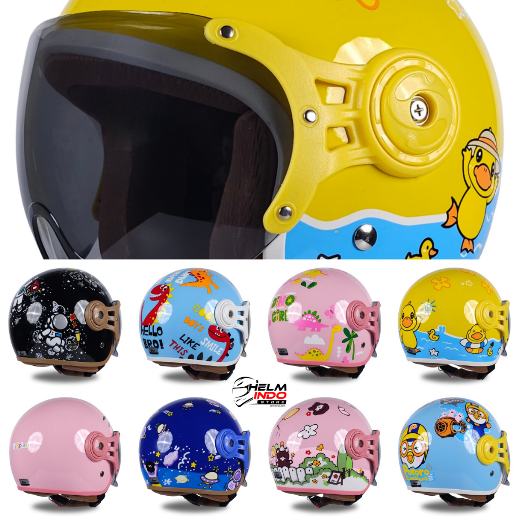 Helm Anak Bip Plast Lunar Kids Motif Premium Dengan Kaca Pilot Smoke - Helm Sni Untuk Putra Putri