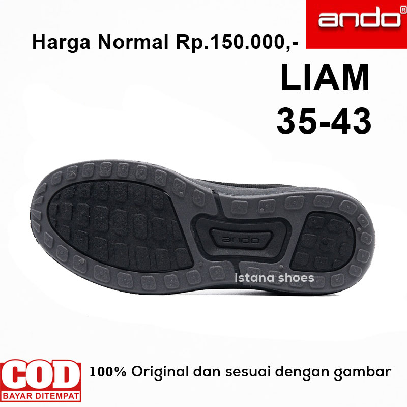 Sepatu Sekolah Model Terbaru ANDO LIAM Hitam Anak Laki Laki Perempuan SD SMP SMA REMAJA DEWASA Sneakers