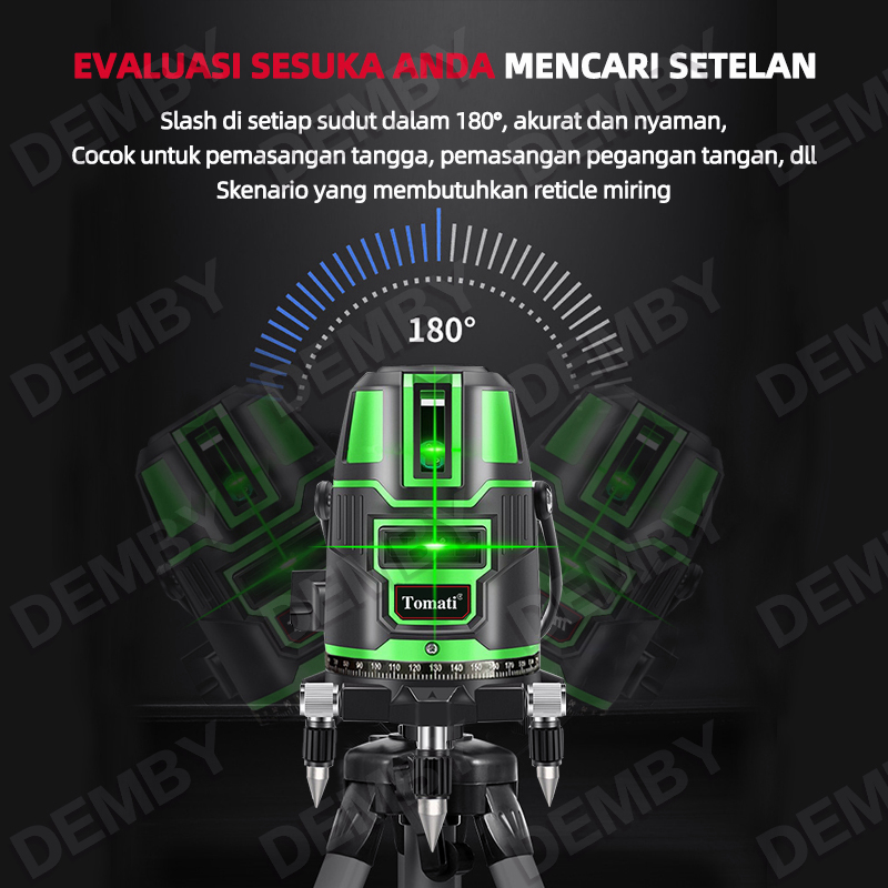 Tomati 2/5LINE Laser Level 2/5 Garis Laser Hijau Horizontal Vertikal 360 Derajat Self Leveling Cross Lazer Level lengkap
