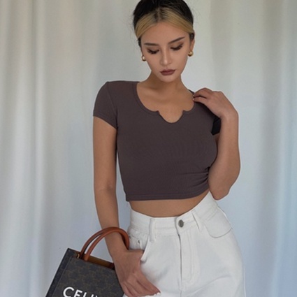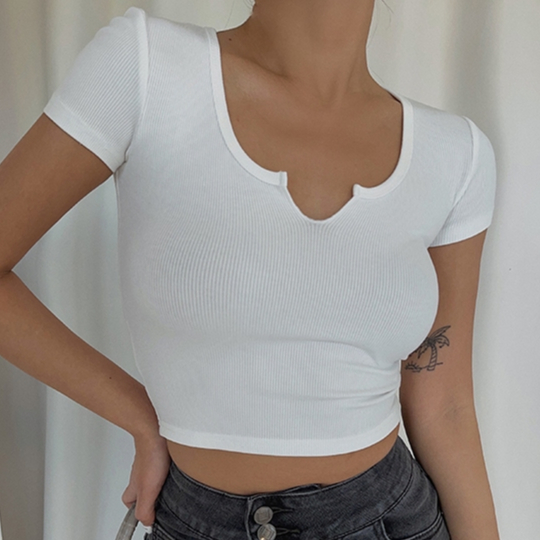 Premium V-Neck Short Sleeve Ribbed Crop Top T-Shirt 7281 SML
