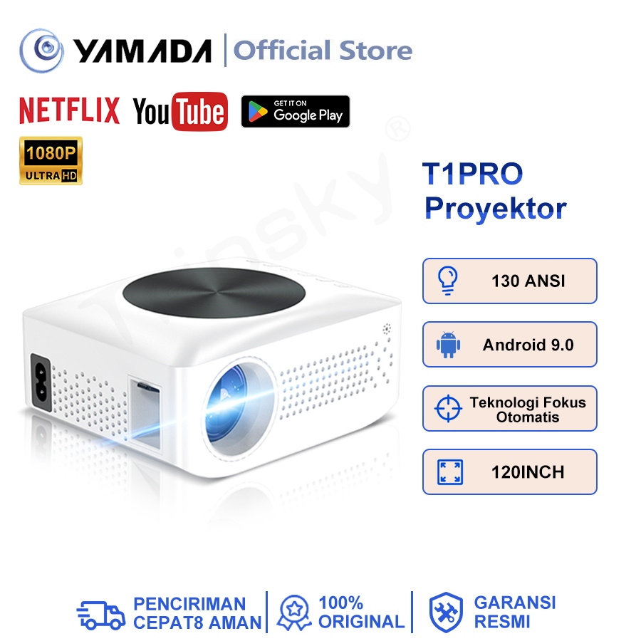 Proyektor T1pro Smart Proyektor LCD Android9.0- 1080P Built-in Speaker Netflix YouTube-130ANSI ORIGINAL BEST SELLER