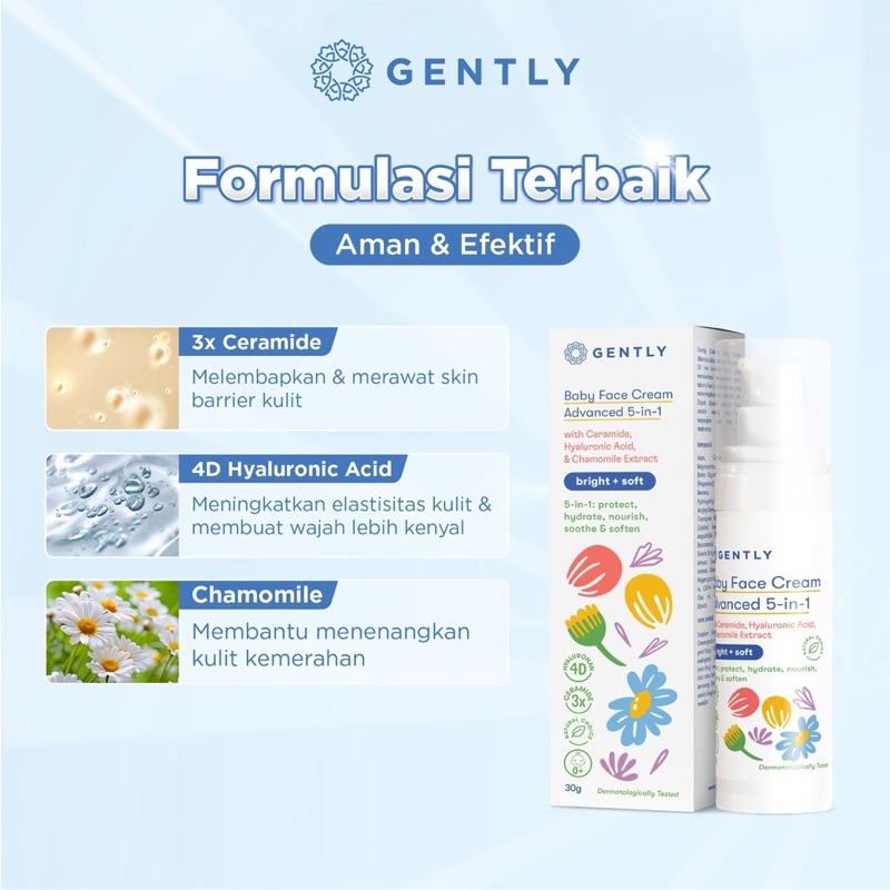 GENTLY Baby Face Cream 30 gr bayi anak Advanced 5-in-1 dengan 5x Ceramide dan 8x Hyaluronan gently Gently baby face crea