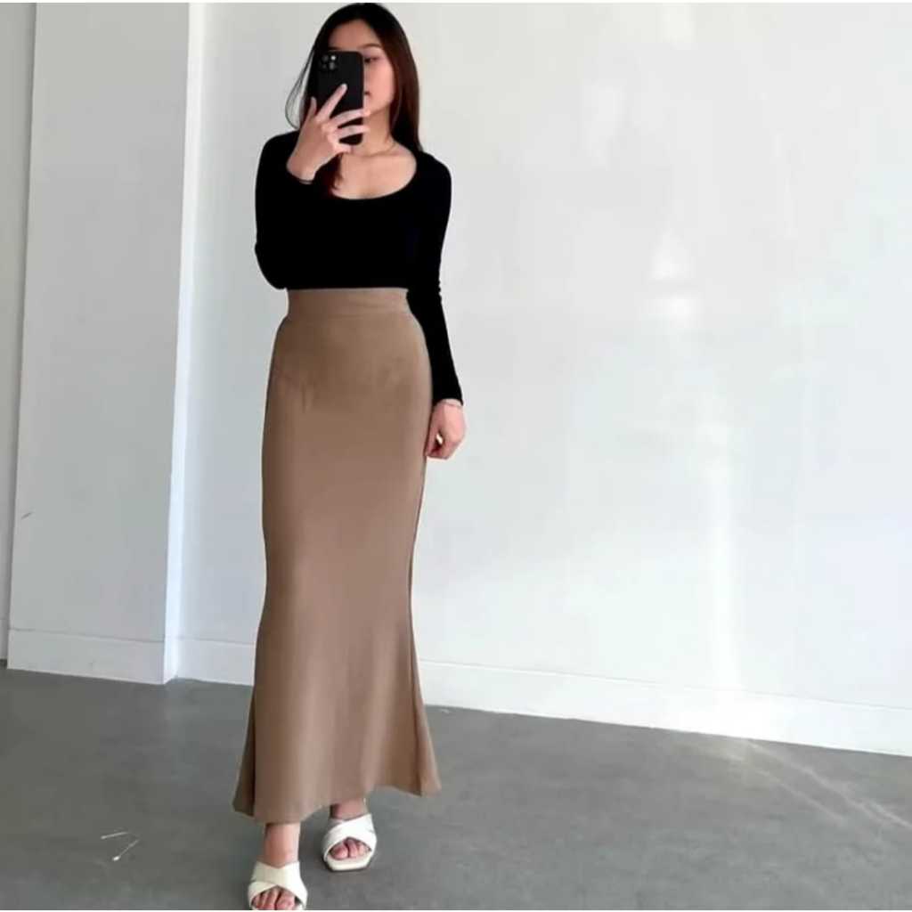Rok Skirt Lunar Mermaid Duyung Wanita Kekinian Maxi Bahan Scuba Elastis Melar Silmy