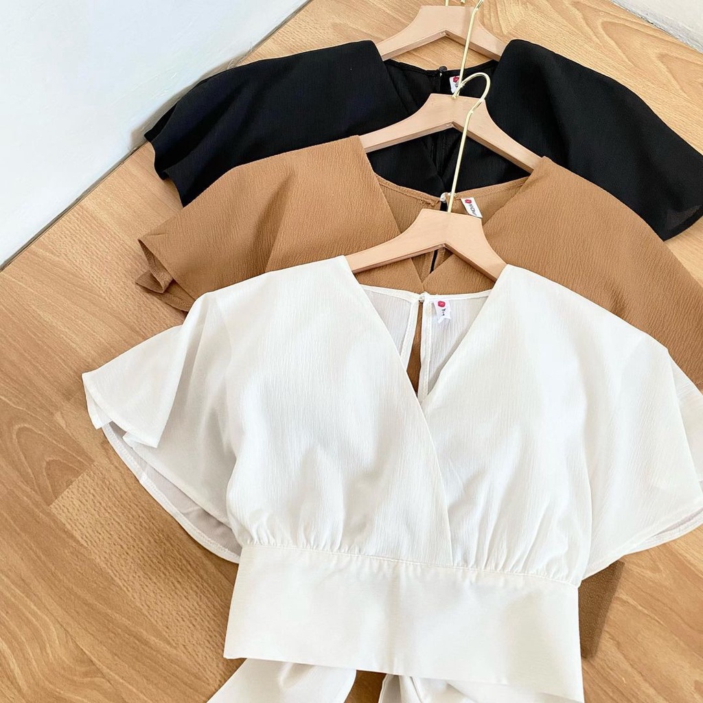Vallina Outfit - Femei Outer Blouse Slit Bk Self Tie Wrap Crop Top Atasan Wanita Korean StyleBow Bk Cardy Atasan Merah P