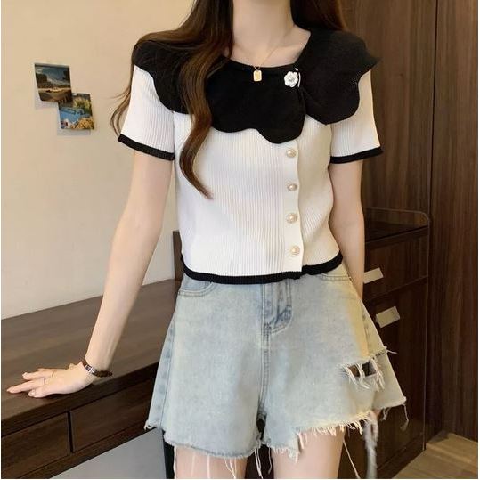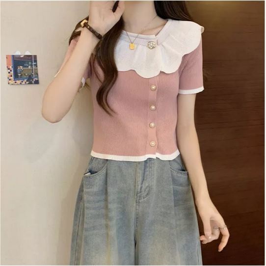 RX FASHION - YOURA CROP TOP COLLAR BUNGA KNIT / ATASAN KEMEJA KNIT KERAH -PN