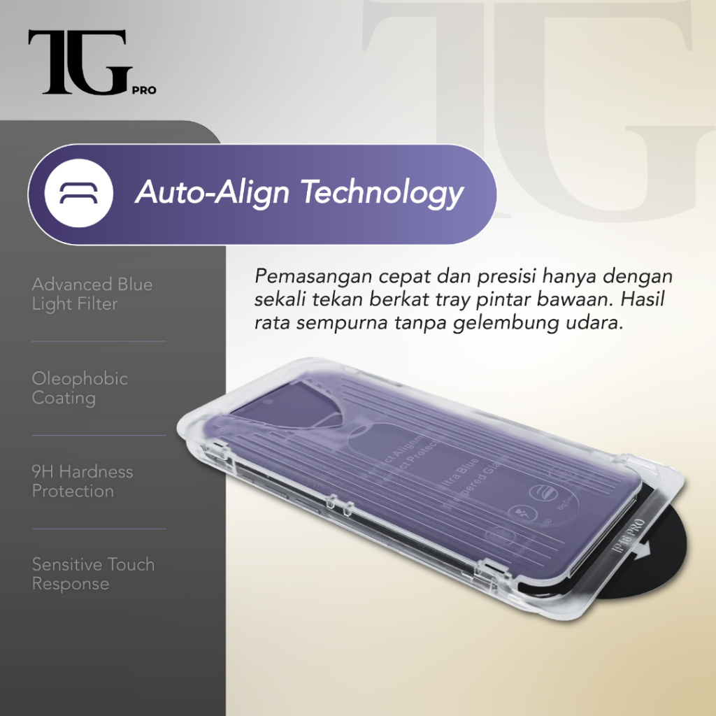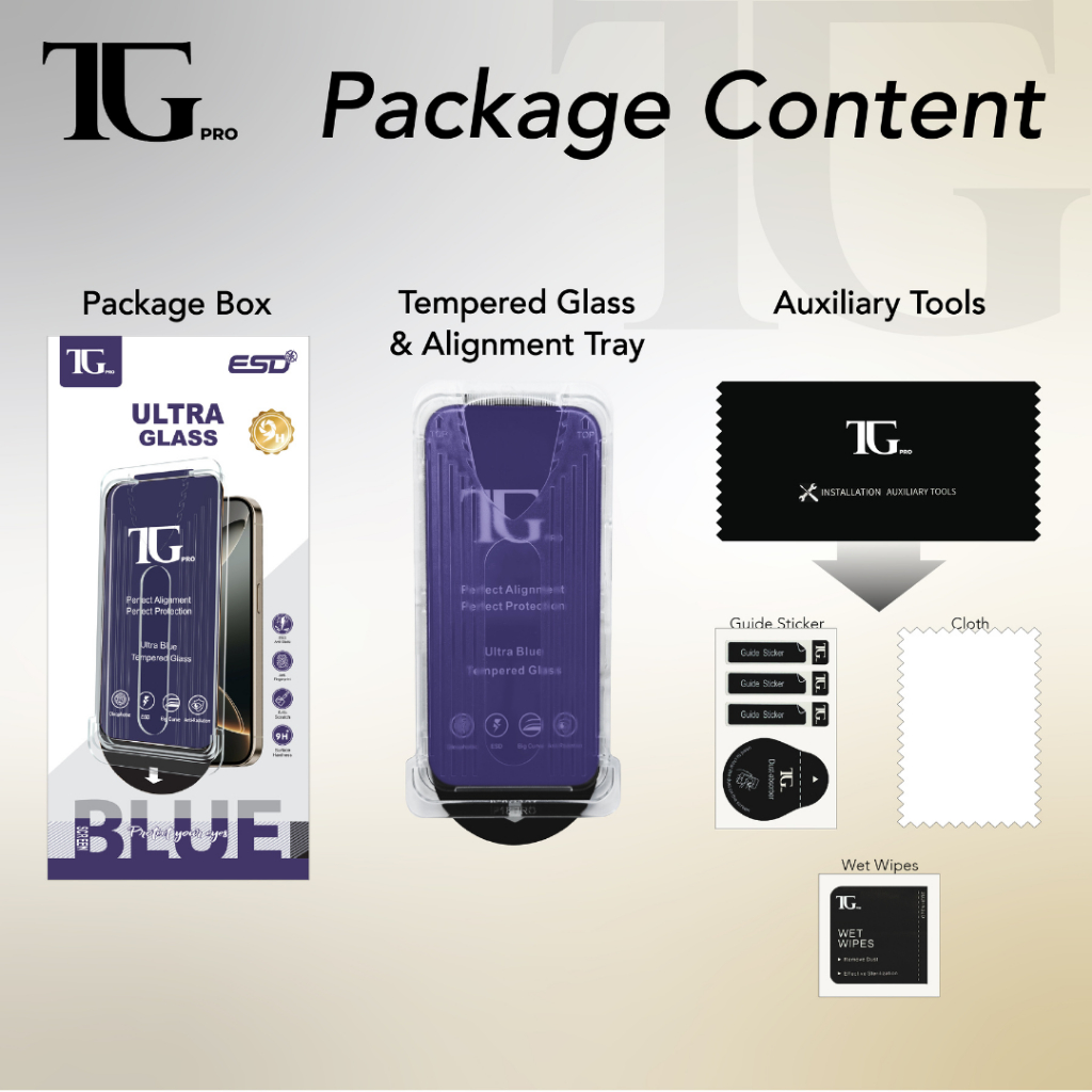 TGPRO Tempered Glass Grade A+ for iPhone Full Cover Blue + Auto Alignment Tray