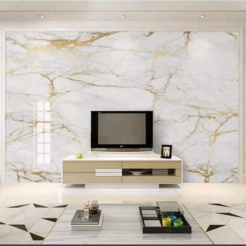 Wallpaper Dinding Marmer Lis Kuning Dasar Putih 9 s/d 10meter X 45cm