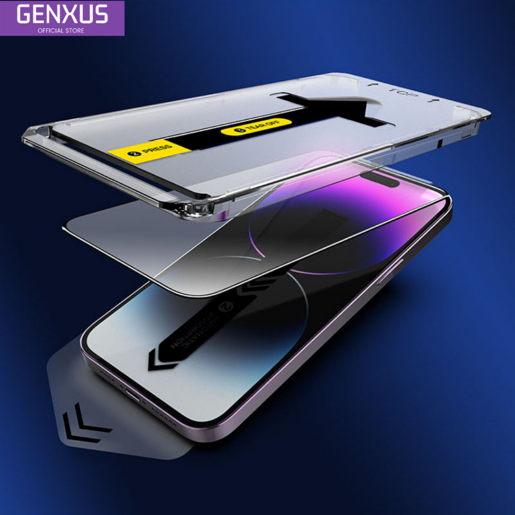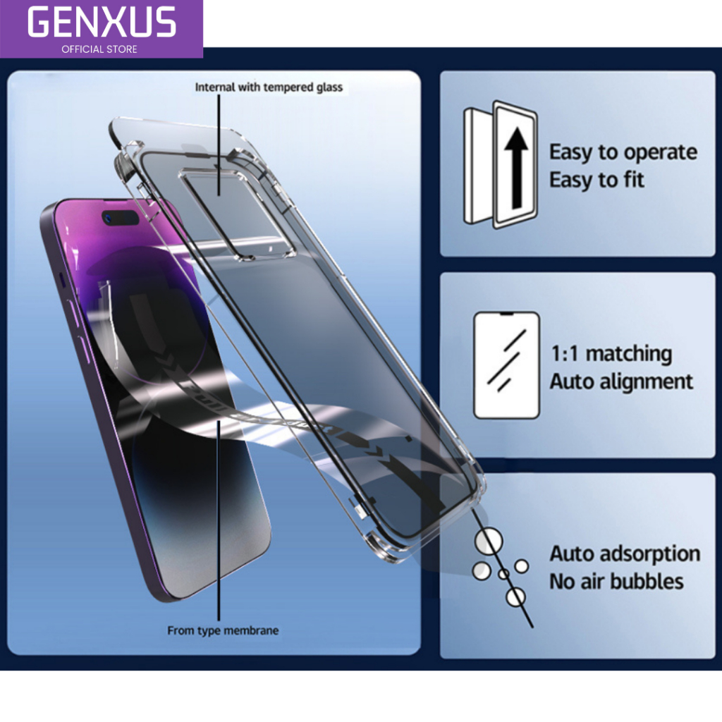 Genxus Tempered Glass Clear/Privacy Glossy Auto Align Tech Anti Gores Screen Protector Full for iPhone X XR 15 PRO MAX 1