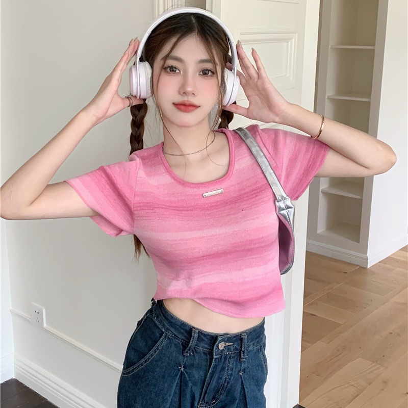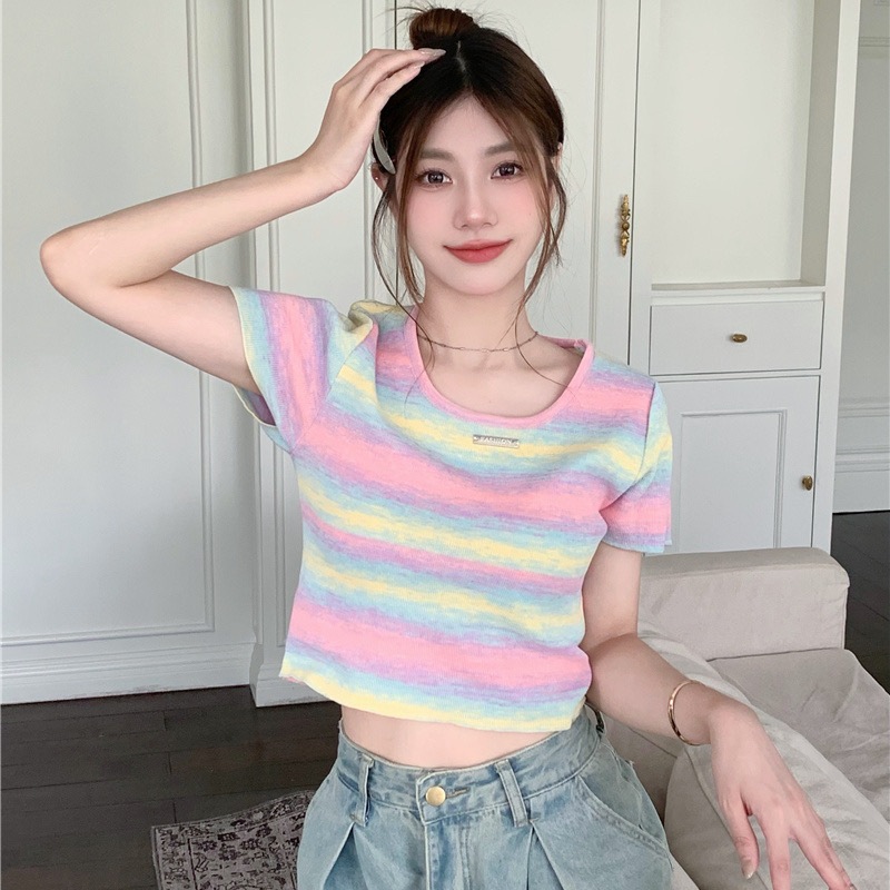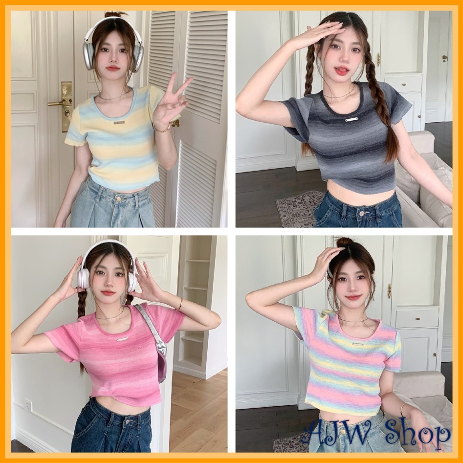 AJW Kaos Wanita Colorful Crop Top Rajut Import Premium HBH Atasan Wanita Crop Top Oblong Knit kekinian Baju Wanita Terbaru Korean Style Colorful Knit