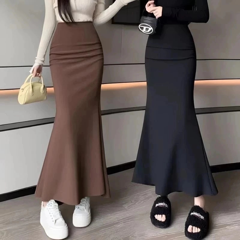 Rok Maxi Mermaid Scuba Wanita Simple Highwaist