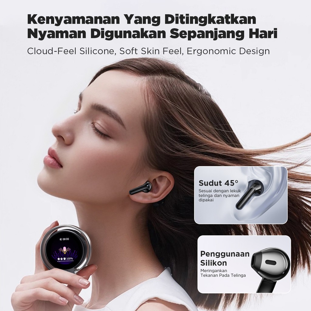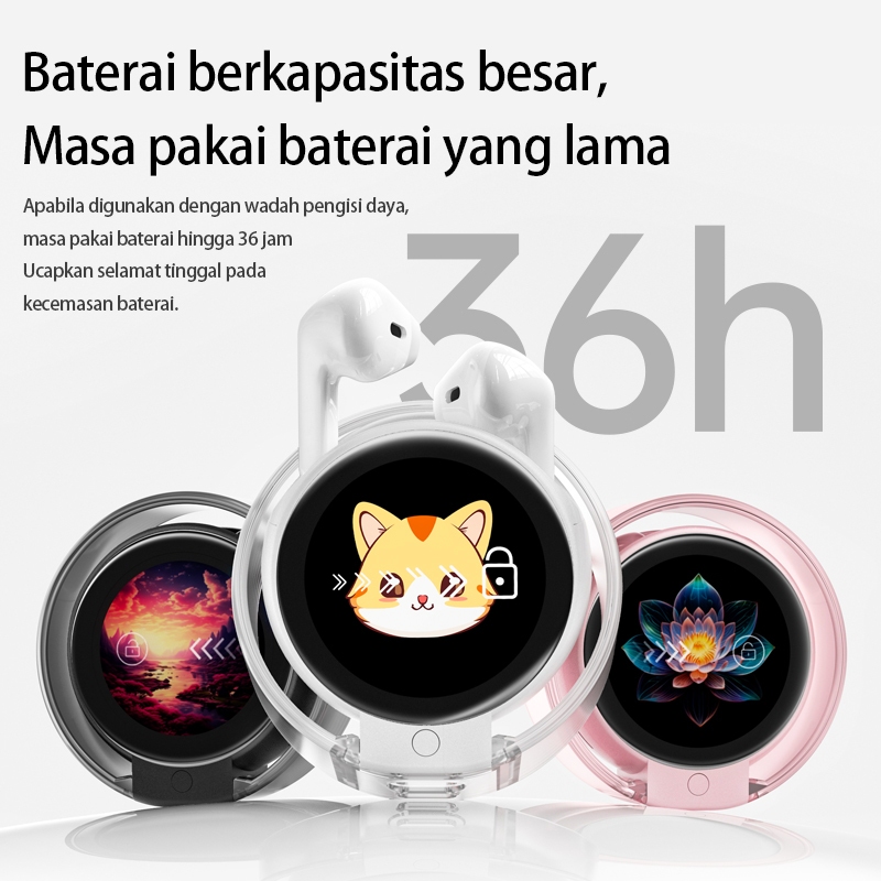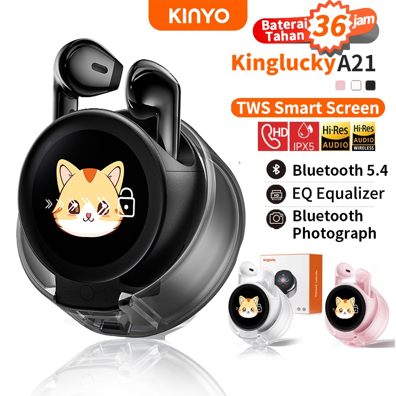 KINYO A21 Headset Bluetooth 5.4 tws bluetooth Wireless Multifungsi LED Layar Penuh Warna Touch Screen Gaming Tanpa Delay
