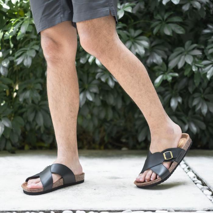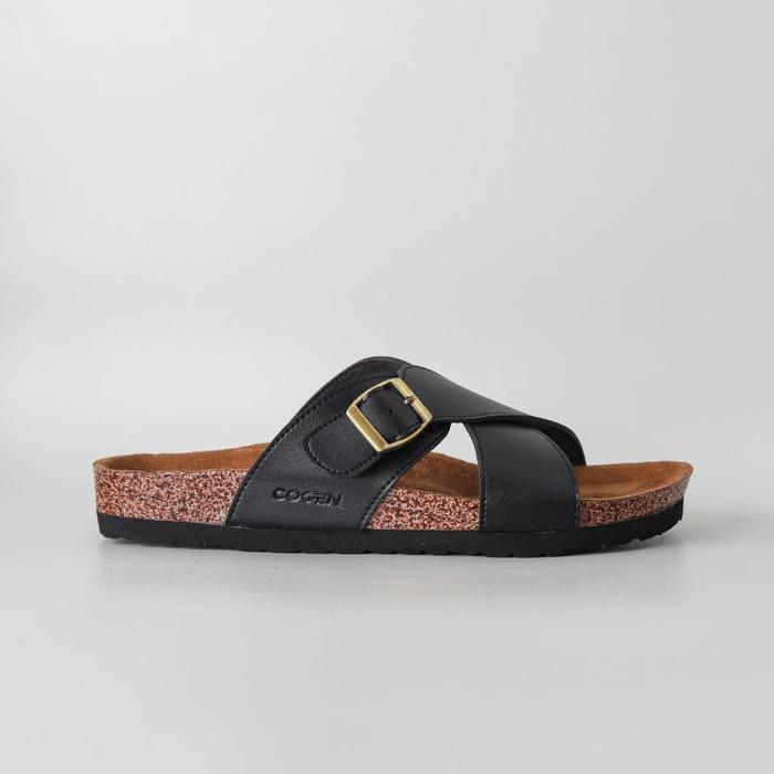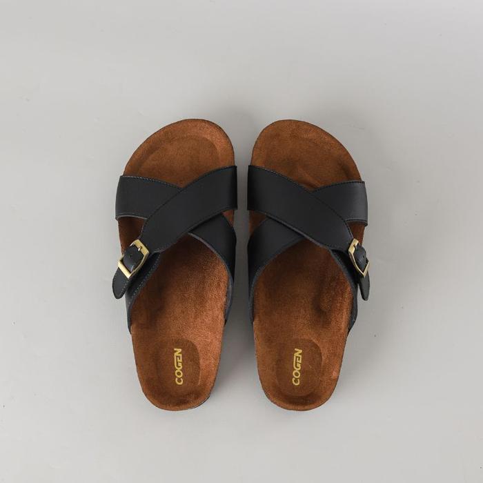 Cogen Sandal Pria Sendal Jepit Kulit Birken Vintage - Kastel Black