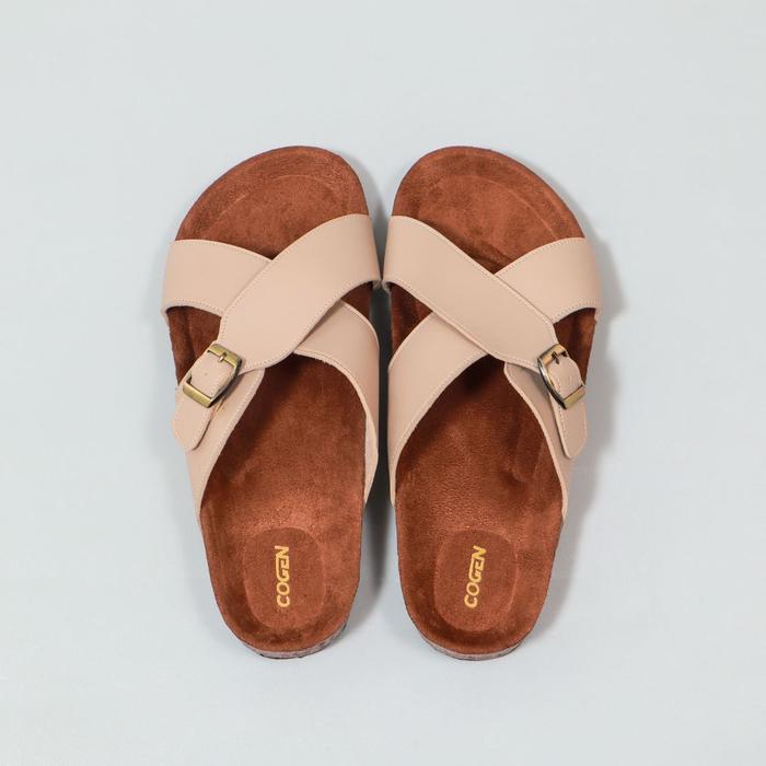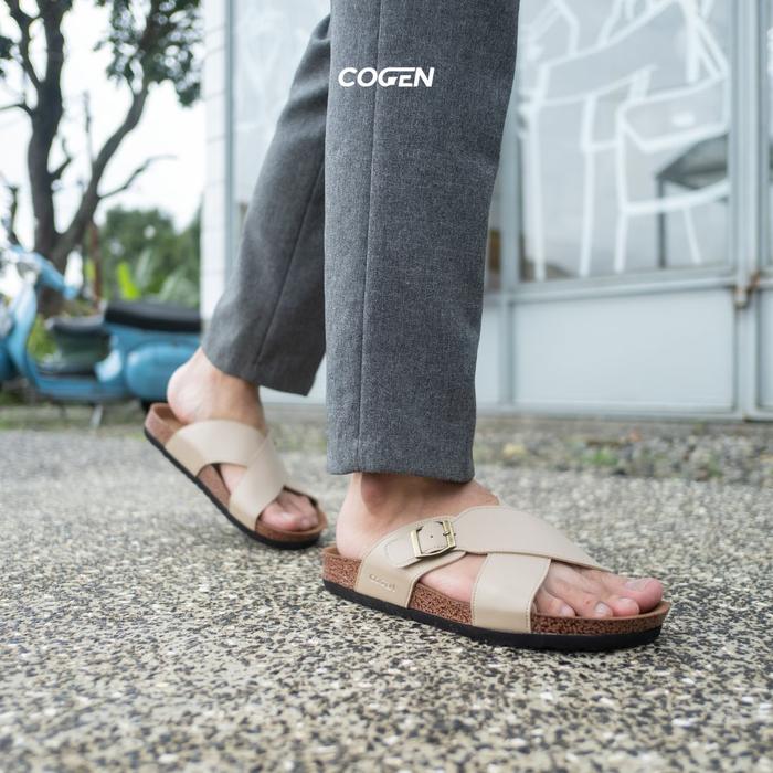 Cogen Sandal Pria Kulit Sendal Slop Kastel Vintage - Kastel Creme