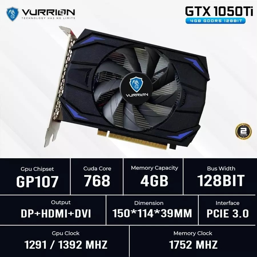 VGA NVIDIA VURRION GTX 1050 TI 4GB GDDR5 128 BIT BLACK Single Fan VGA Card