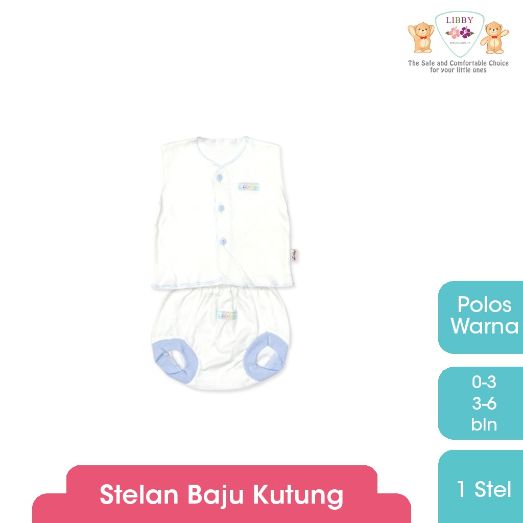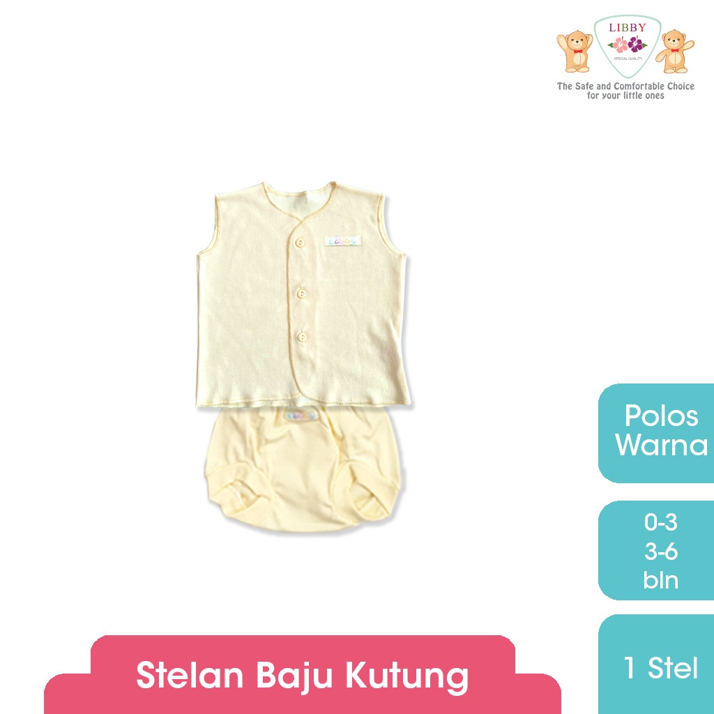 LIBBY Setelan Baju Kancing Newborn Unisex Polos Warna dan Putih Random (1 Stel)