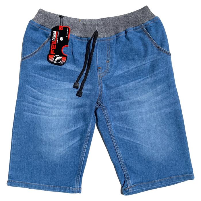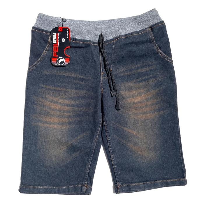 Celana Pendek Jeans Kolor Melar Bb 40-110Kg Karet - Pinggang Karet Feil Biru Tua, 27=Bb 43 Kg