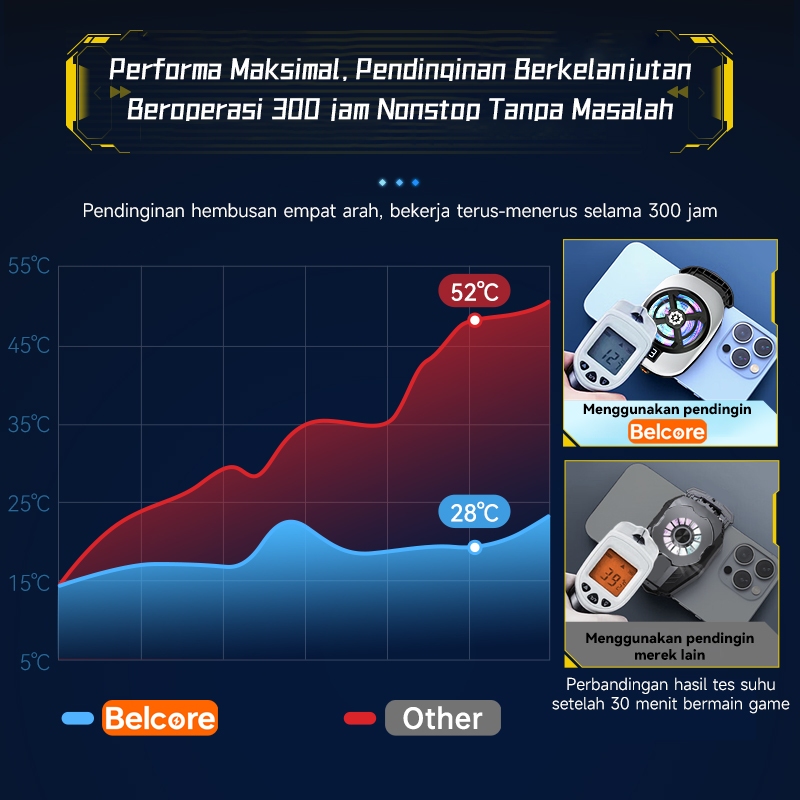 Belcore Fan Cooler HP TL16 Pendingin Telepon Gaming RGB Magnetik dilengkapi dengan klip dan heat sink, langsung mendingi