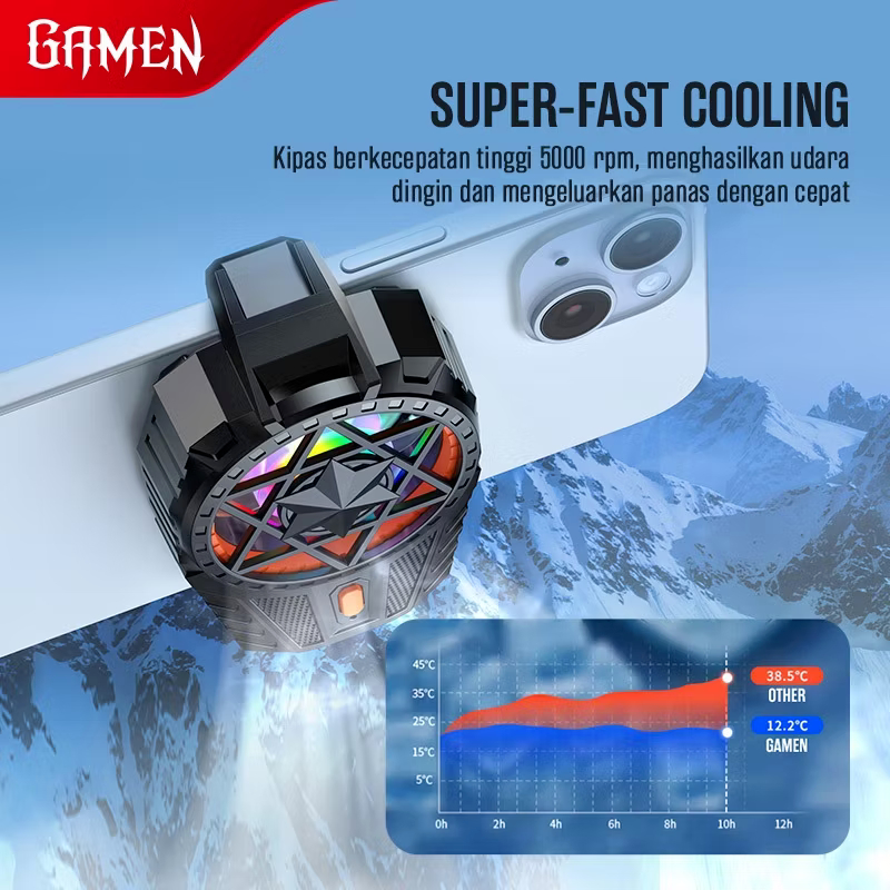 Cooler Gamen GMR02S Wireless RGB Light Kipas Pendingin Fan Radiator Handphone Original Garansi