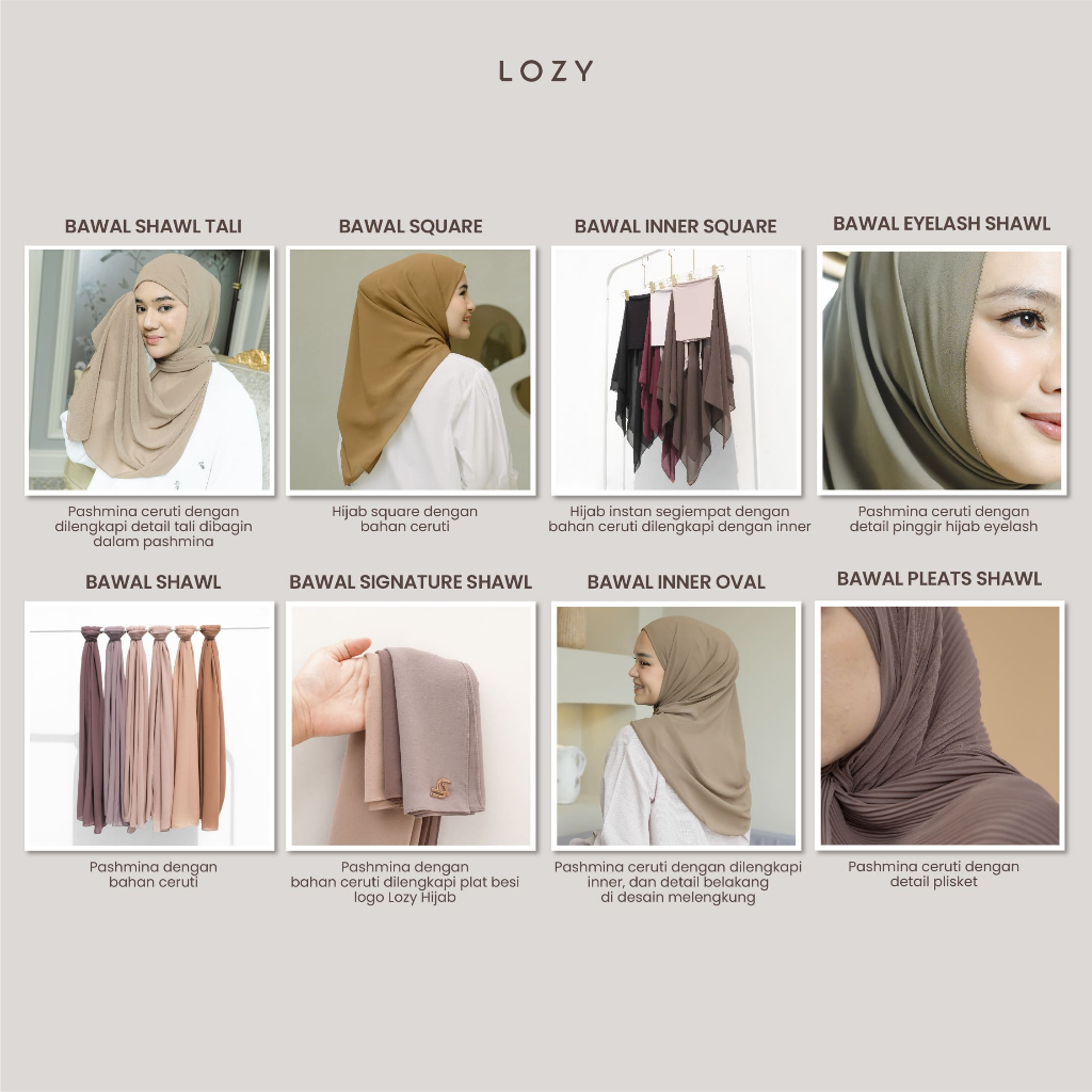 Lozy Hijab - 207k Get 3 Bawal Shawl (Hijab Pashmina Ceruty Babydoll)
