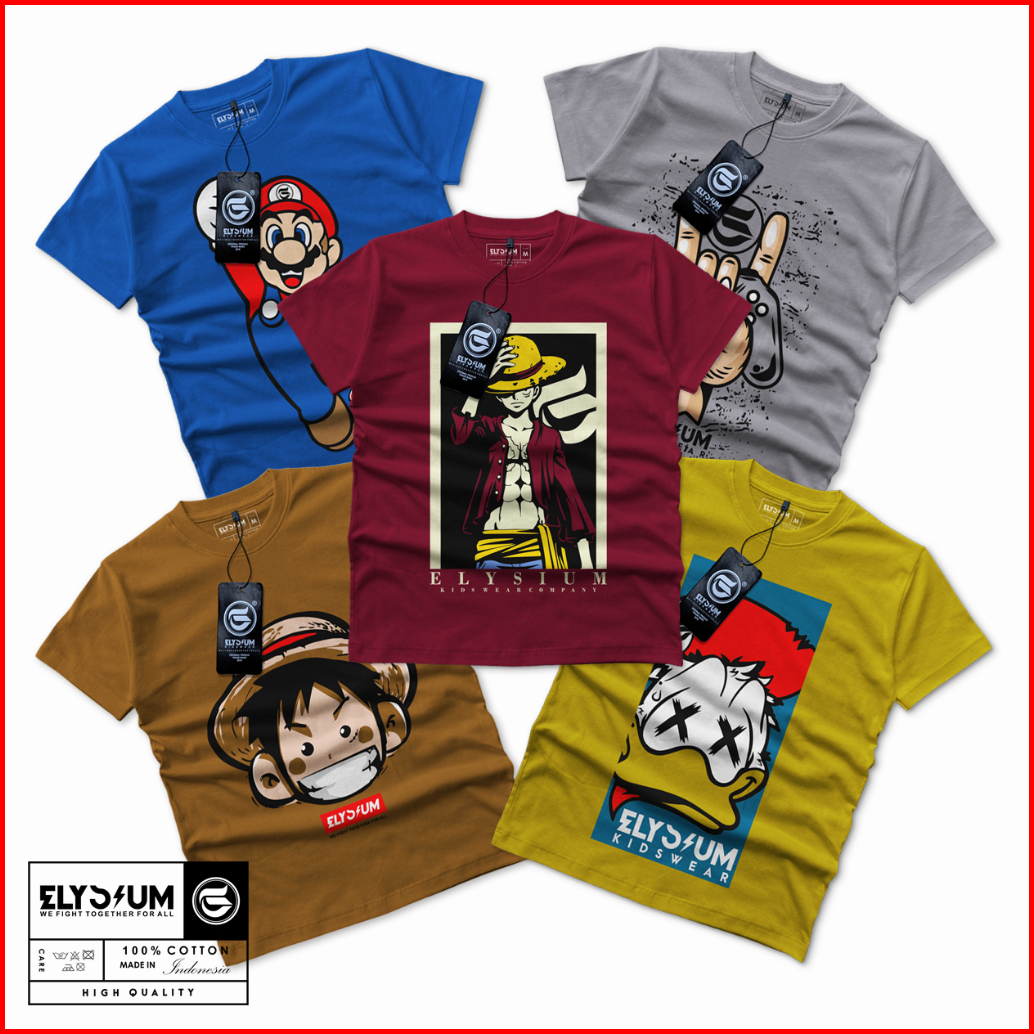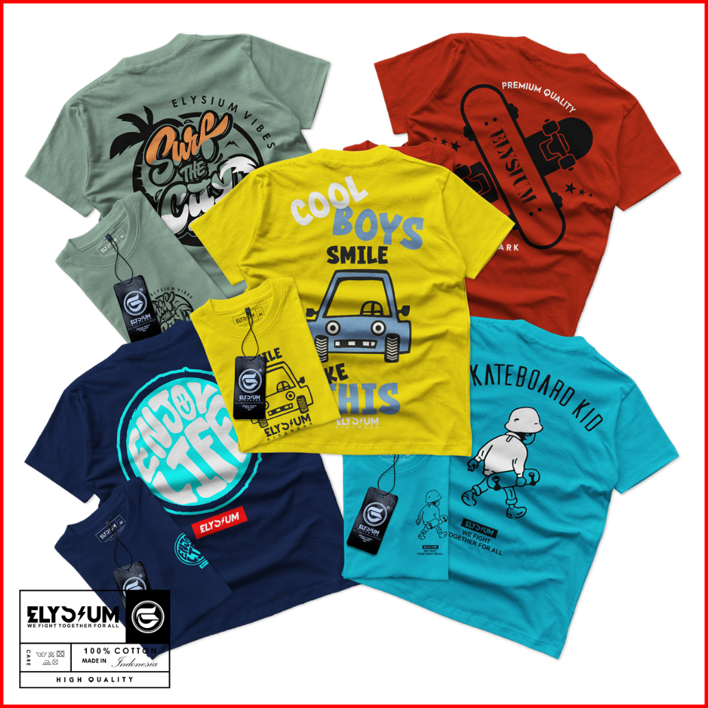 Elysium Kidswear Paket 5 Pcs Kaos Distro Anak Bahan Katun Lengan Pendek