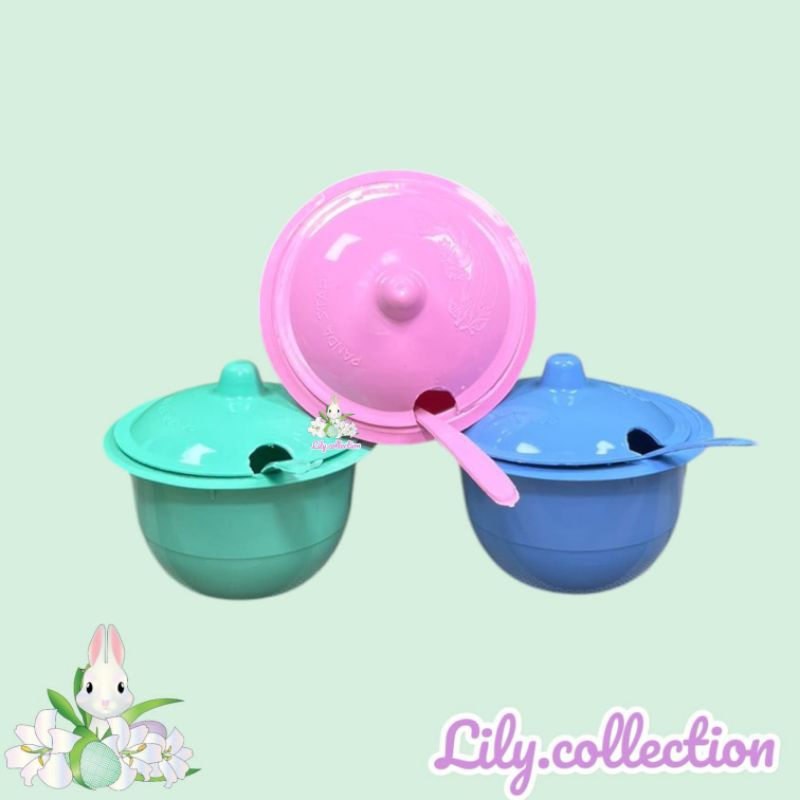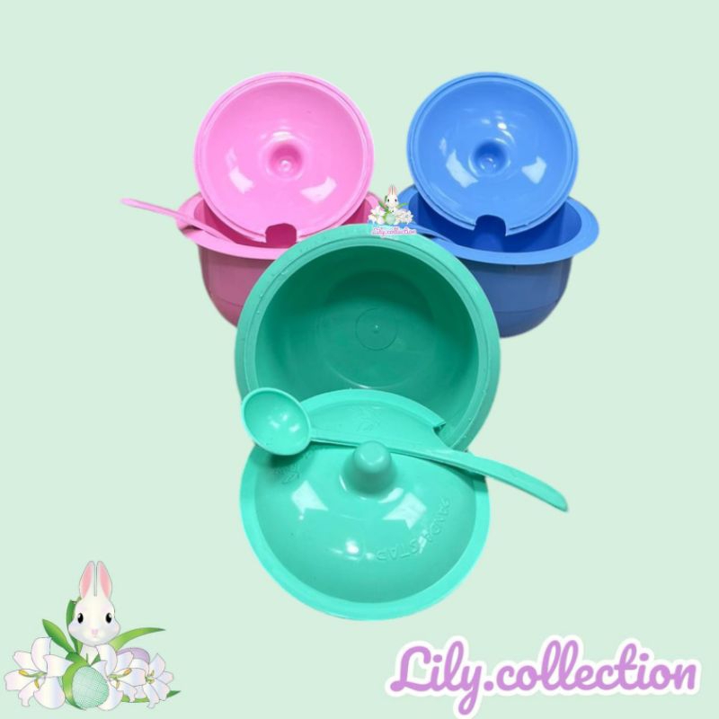 Set Tempat Sambal Plastik dengan Tutup dan Sendok untuk Bakso dan Soto - Kitchenware Bulat