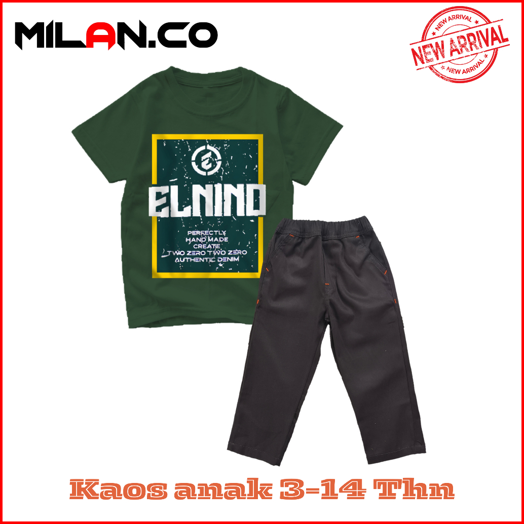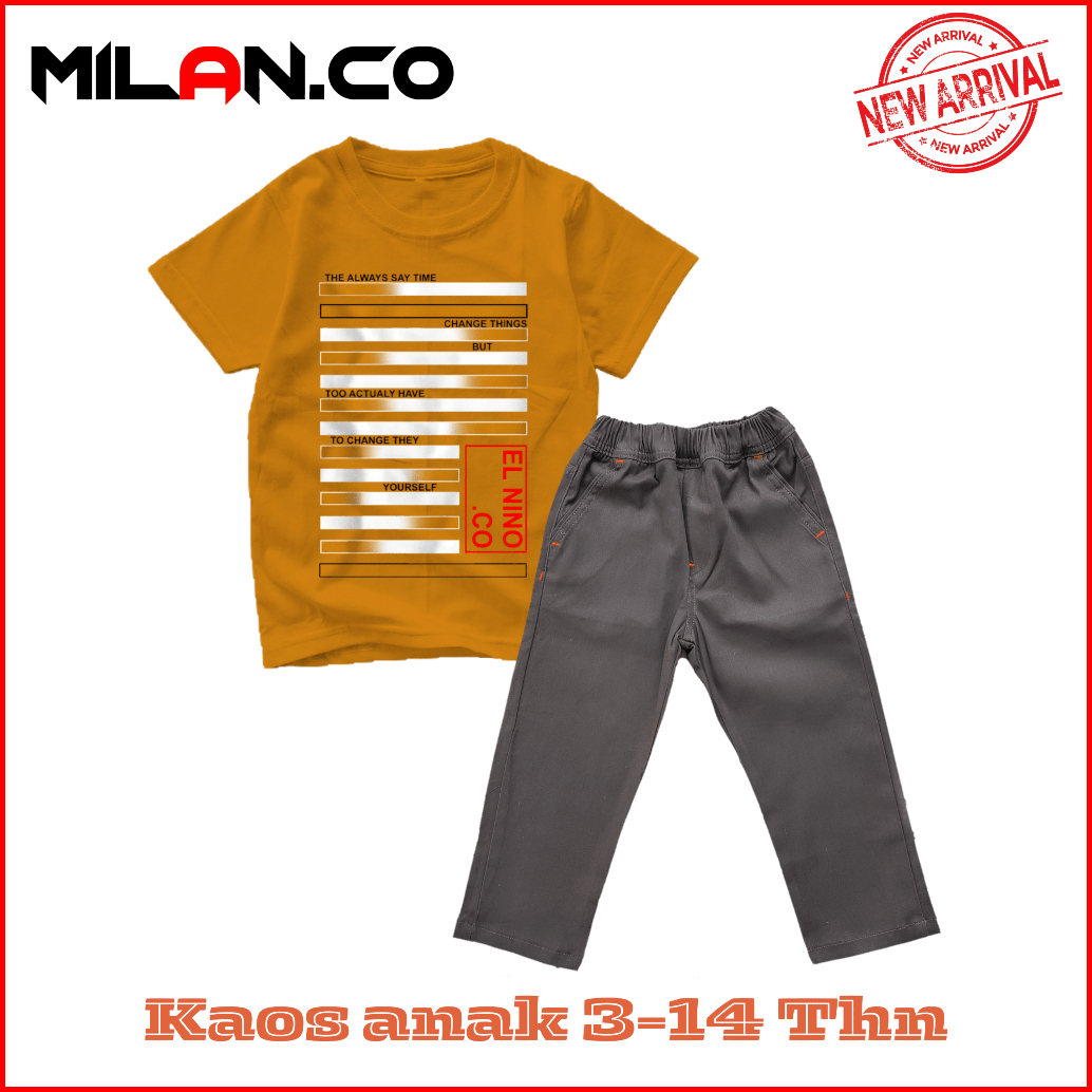Milan.co Setelan Kaos Anak Lengan Pendek Keren Celana Panjang Terbaru 3-14tahun Motif Distro