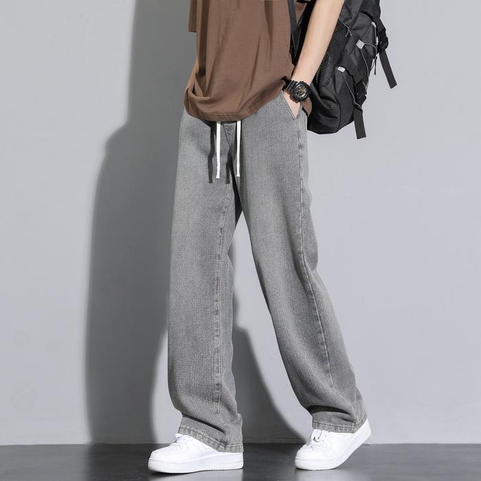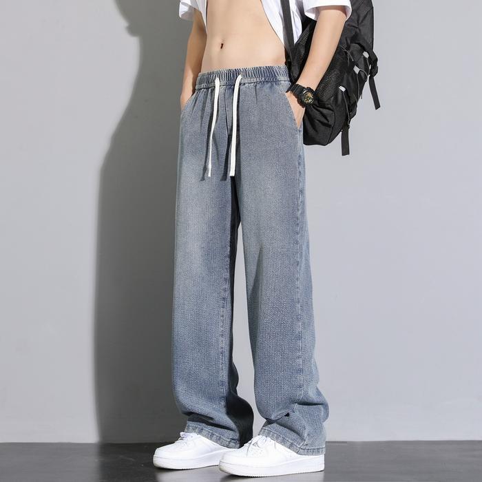 Celana Jeans Unisex Celana Baggy Jeans Gombrong Denim Pangjang Dari Kaki Yang Ramping Pants N021 - Blue, M