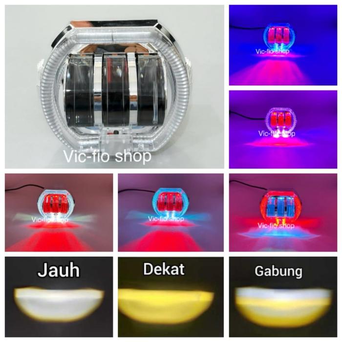 CICILAN TANPA DP LAMPU TEMBAK DAYMAKER BILED 3 MATA BILED PROJIE 3 LENSA 8D SUPER TERANG 1058 BLUE KUNING PUTIH