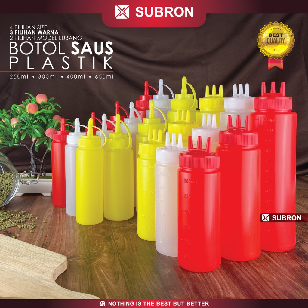 SUBRON Botol Saus 1 Lubang Tomat Kecap Sambal Mayonaise Wadah Bumbu 250ml 300ml 400ml 650ml Plastik