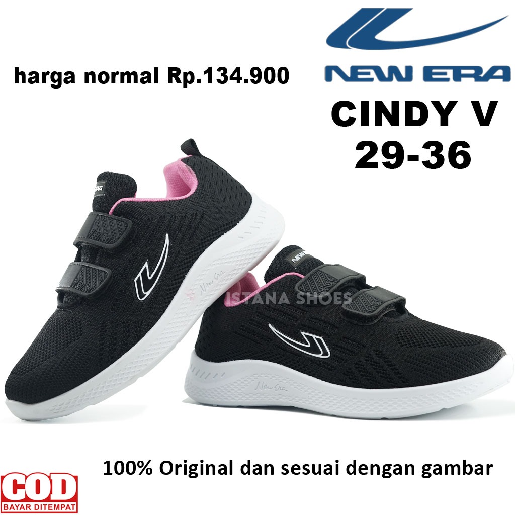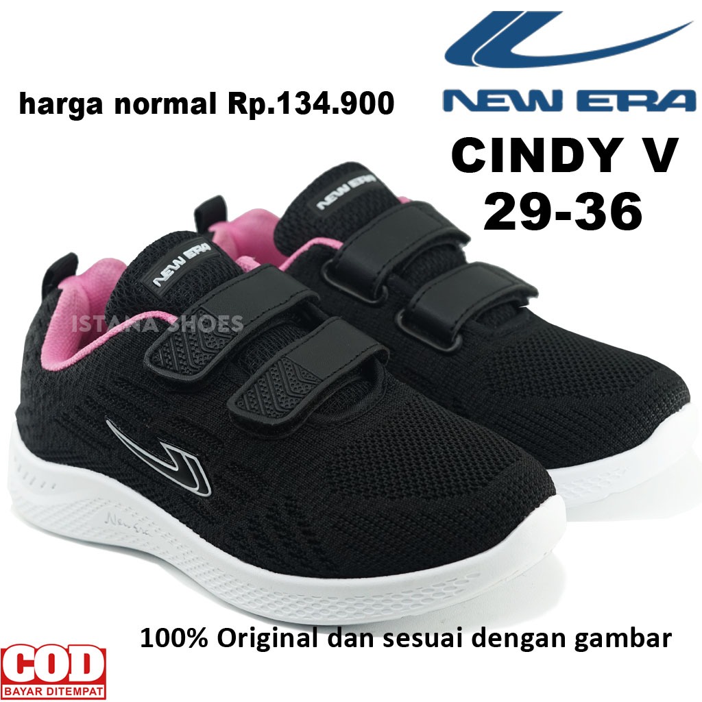 Sepatu Sekolah Anak Perempuan PAUD TK SD NEW ERA CINDY SEPATU ANAK KETS Hitam Pink PEREKAT