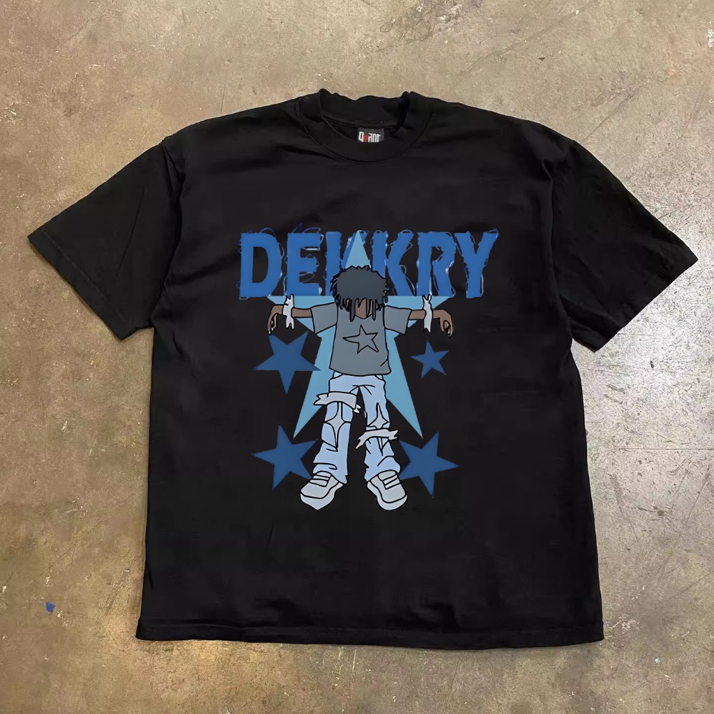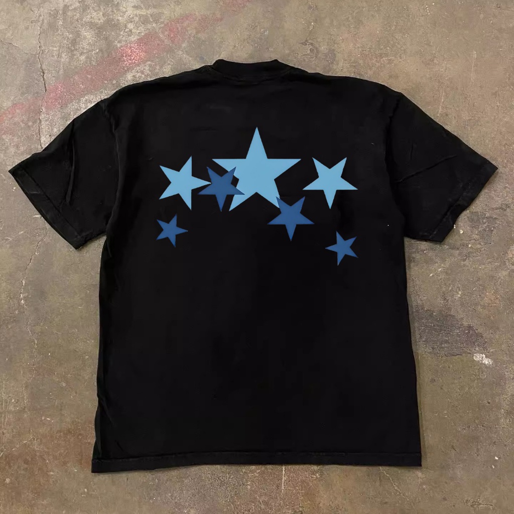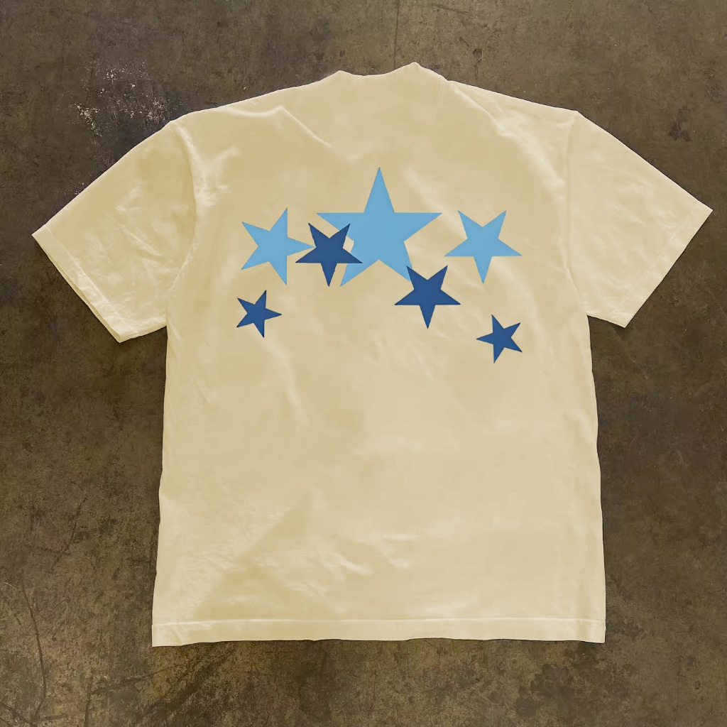 JJ.Store Anak Hip Hop Bintang Biru T-Shirt Oversize Kaos Wanita Cream Kaos Pria dan Wanita