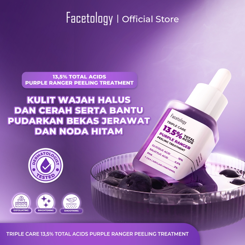 FACETOLOGY Triple Care 13.5 PERSEN Total Acids Purple Ranger Peeling Treatment Serum mengandung glycolic sebagai exfoliating bantu bersihkan wajah dan komedo