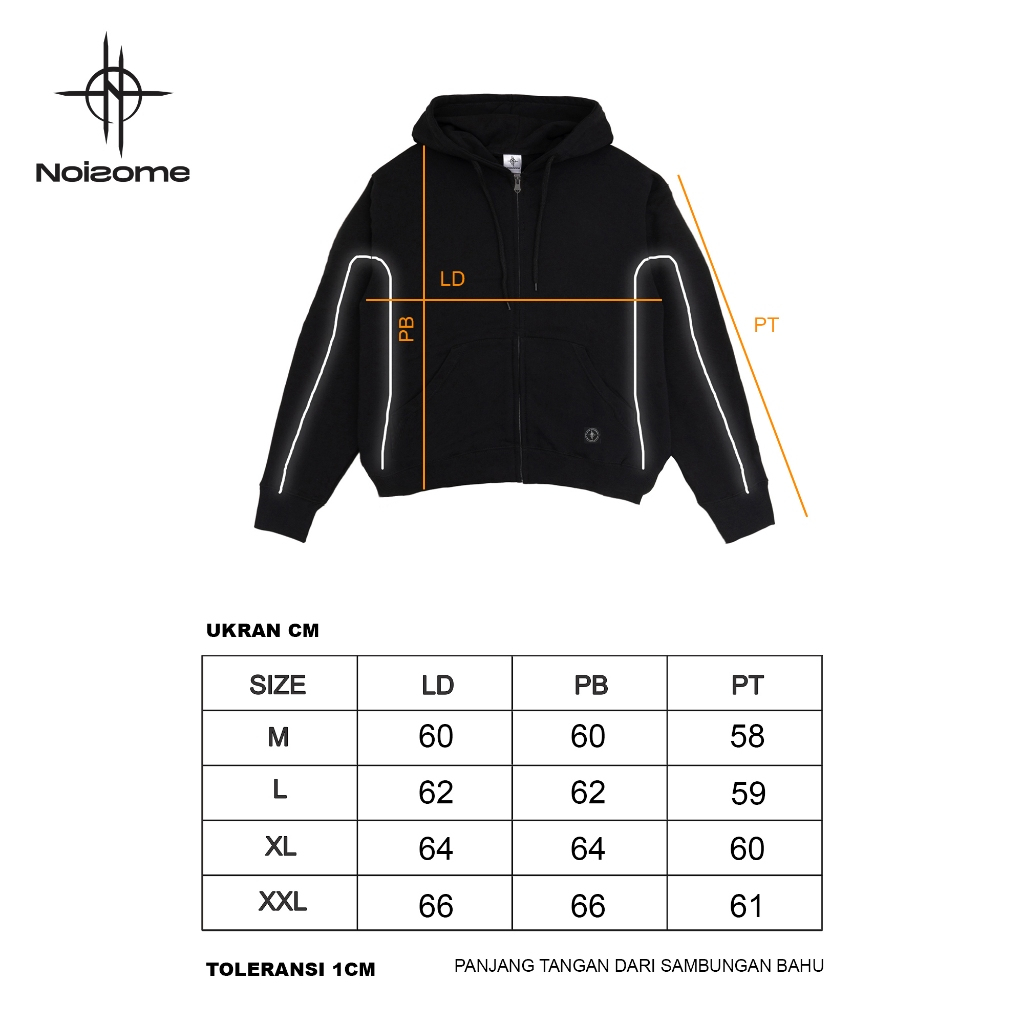 HOODIE BOXY UNISEX NOISOME ZIPPER REFLECTIVE - REVENGE - HITAM