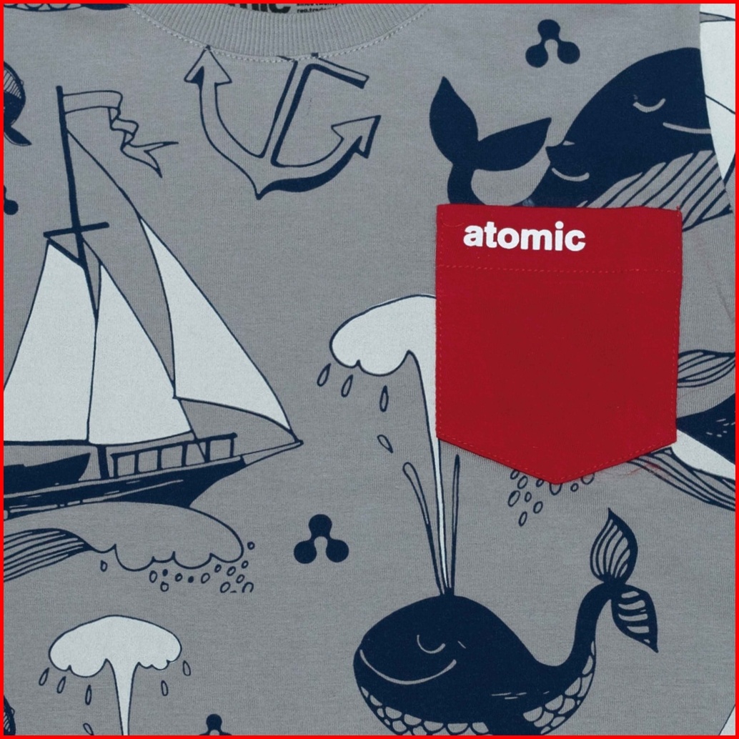Atomic Kiddz Baju Anak Laki Perempuan Lengan Pendek - Paus Abu Misty Bersaku Merah