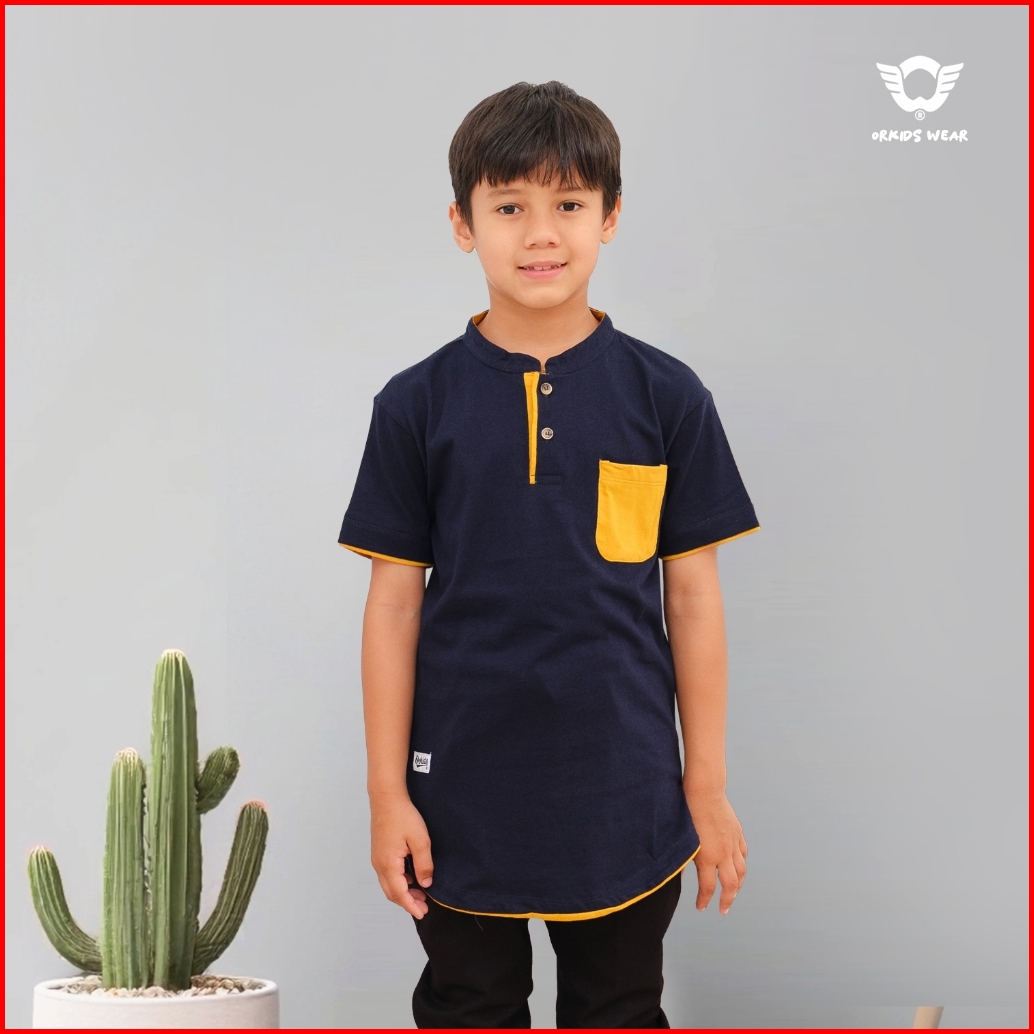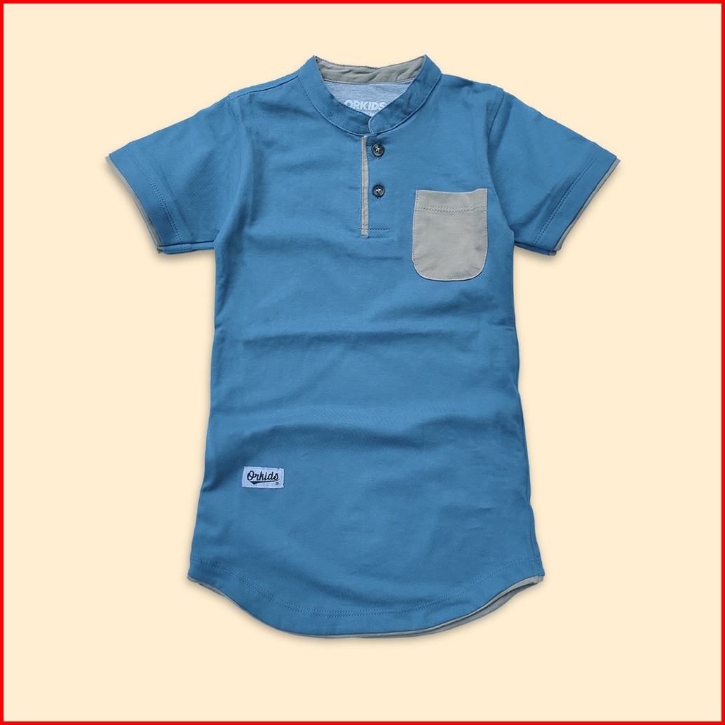 Baju Koko Kaos Kurta Anak Laki Laki 1 -12 Tahun Kerah Mandarin Shanghai Orkids Quaz Steel Blue