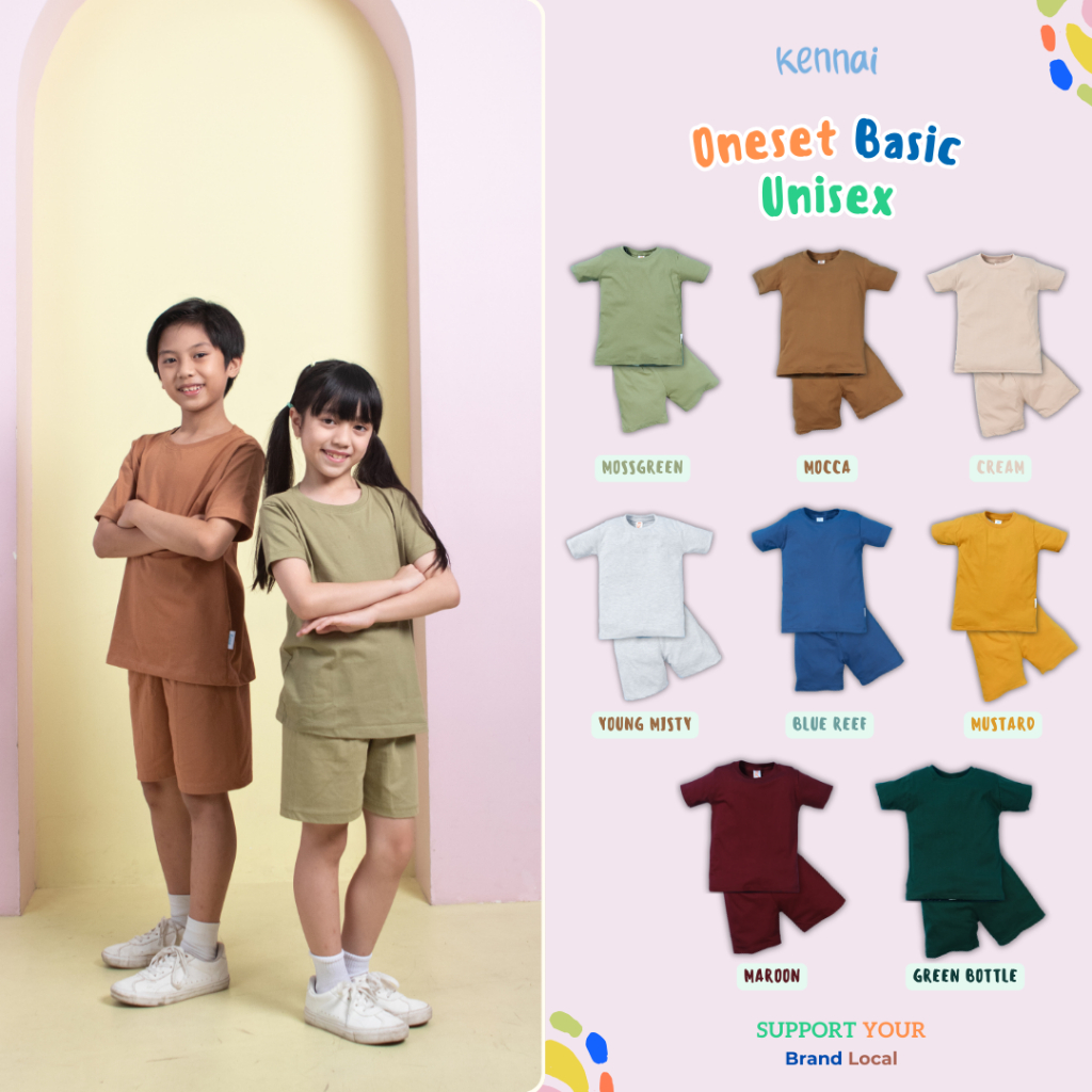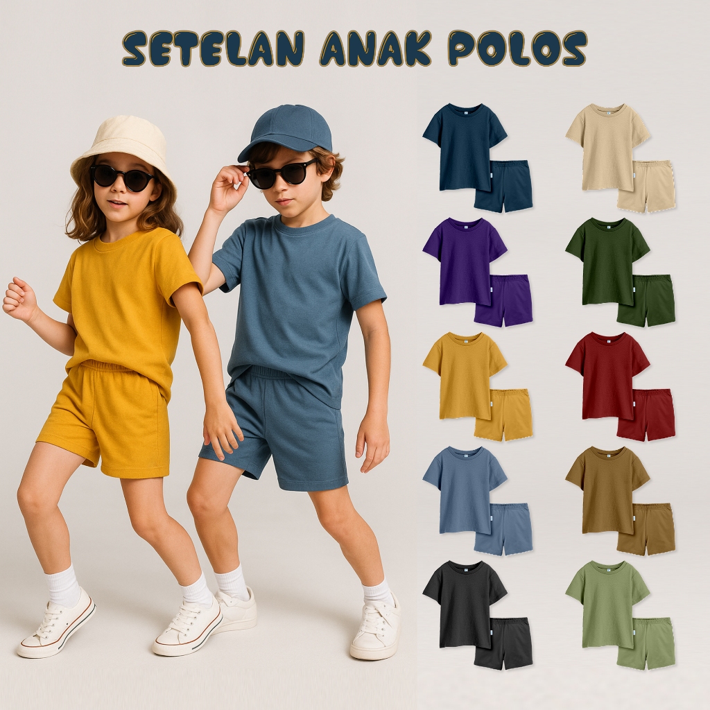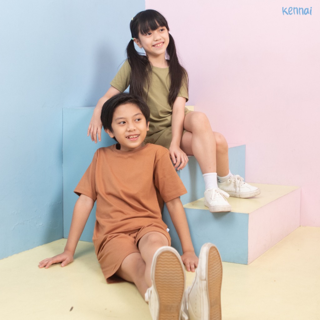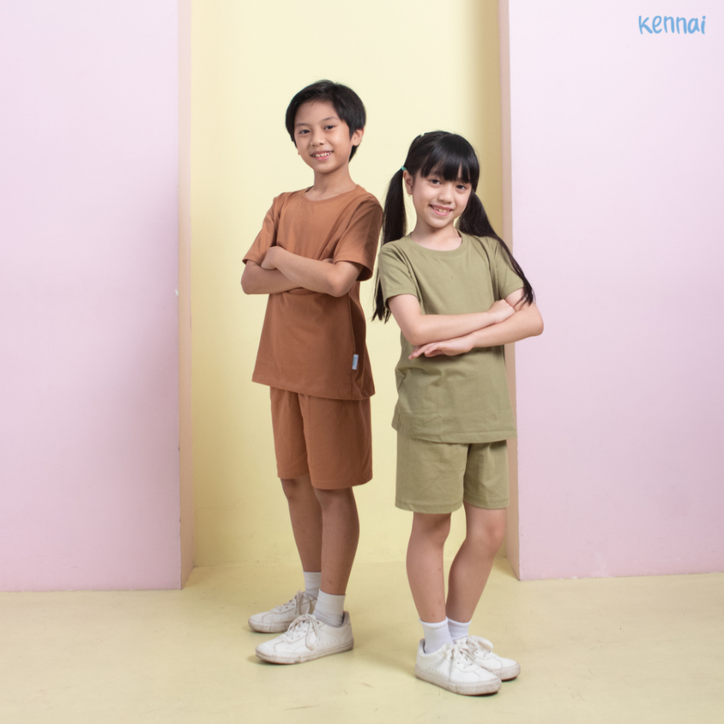 Kennai Setelan Kaos Polos 2 Anak Usia 1 - 12 Tahun