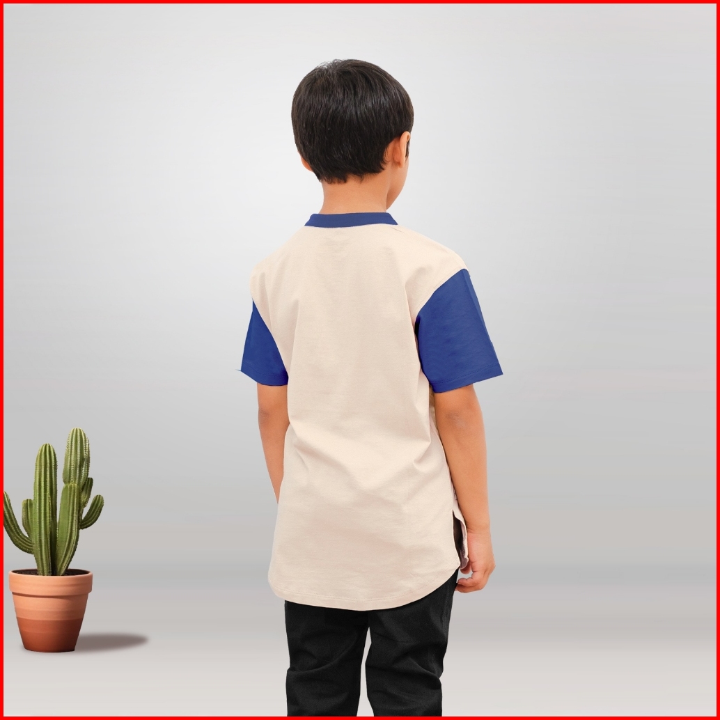 Baju Koko Anak Kaos Kurta Laki-laki Kerah Shanghai Baju Muslim Orkids Fateh Cream Blue