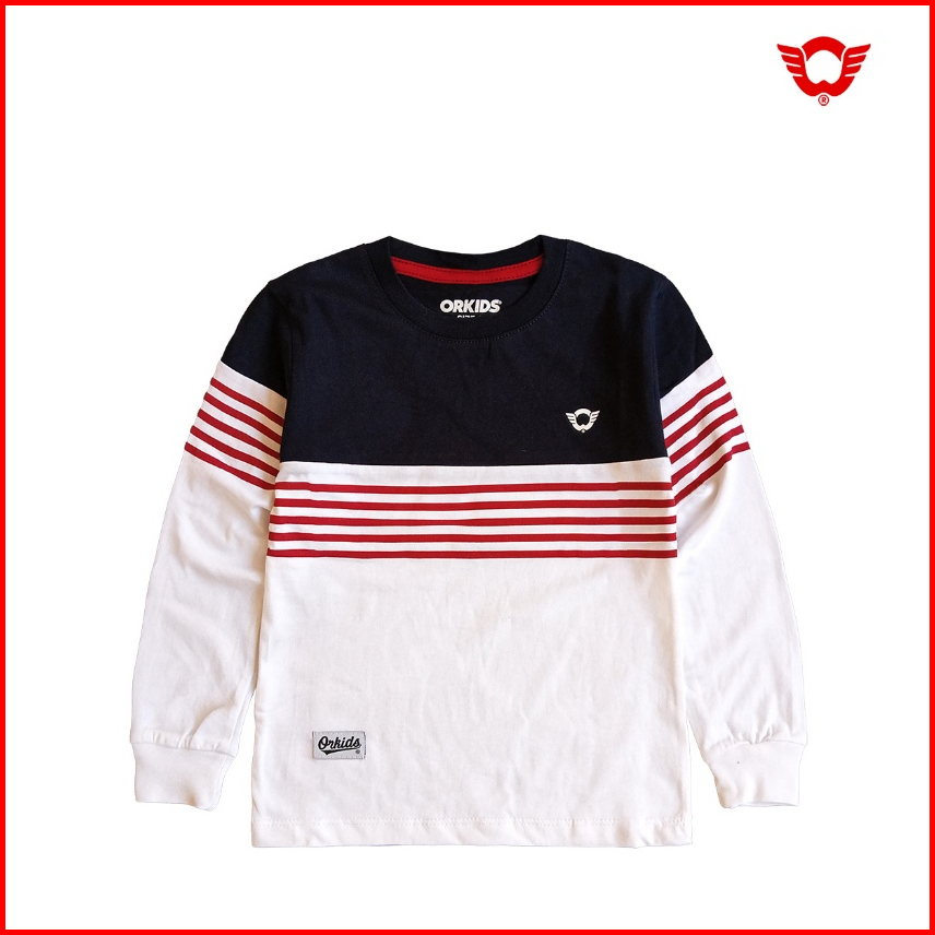 Kaos Anak Lengan Panjang Laki-laki Perempuan Umur 1 - 12 Tahun Katun 24s Orkids Griez Navy White
