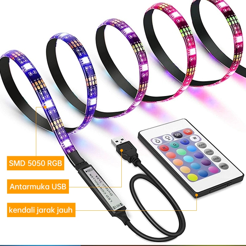 Lampu Strip LED RGB Remote Control 5050 SMD USB 5V - Dekorasi RumahTV 1M2M3M5M
