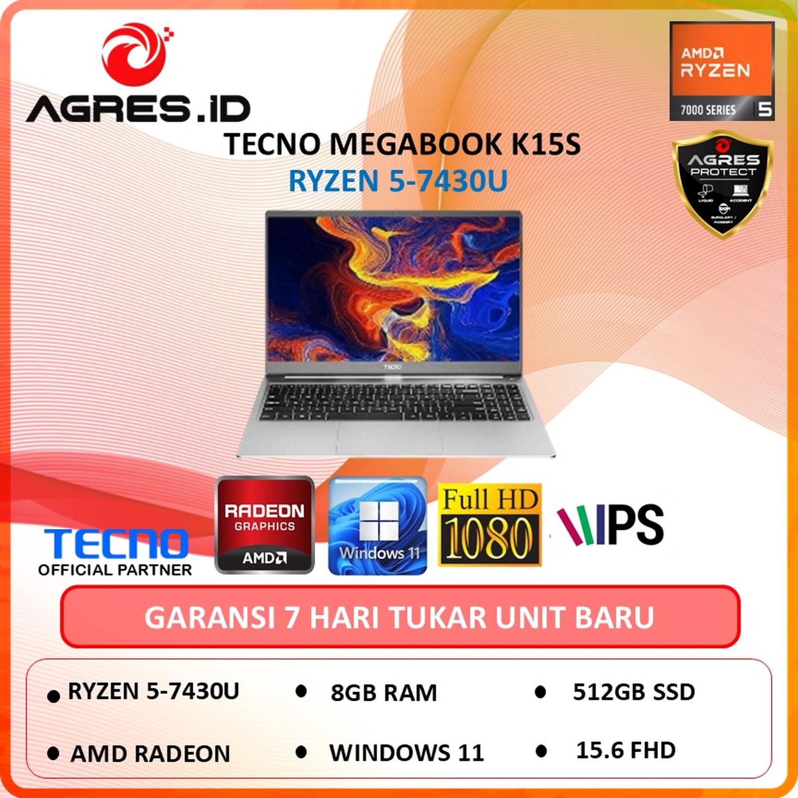 TECNO MEGABOOK K15S RYZEN 5 7430 16GB 512GB WIN11 15.6 FHD IPS SLV