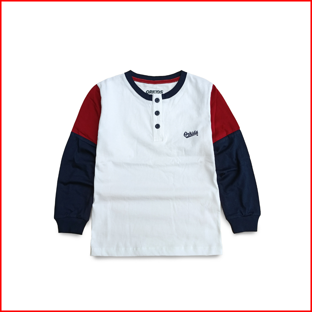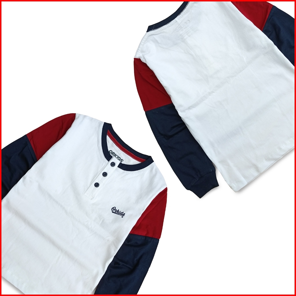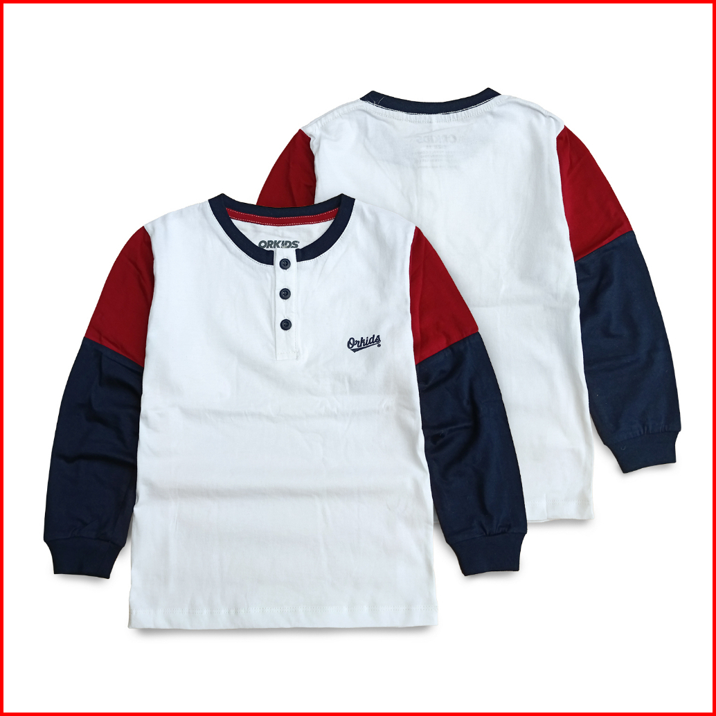Baju Anak Lengan Panjang Laki-laki Perempuan Umur 1 - 12 Tahun Katun 24s Orkids Zeb White Navy